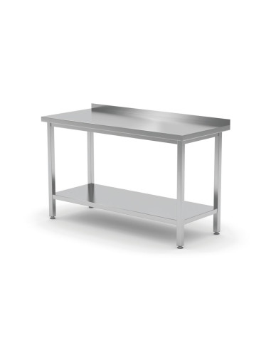 Tillverkad av rostfritt stål. Bultad konstruktion för självmontering, vilket möjliggör enkel transport och förvaring. Bänkskivan är fylld med en laminerad, vattentät förstärknings- och ljudisolerande skiva. Ungefärlig tillåten belastning på bänkskivan: 70 kg/m². Ben tillverkade av 40 x 40 mm profiler. Justerbara fötter i intervallet: +25/-5 mm.