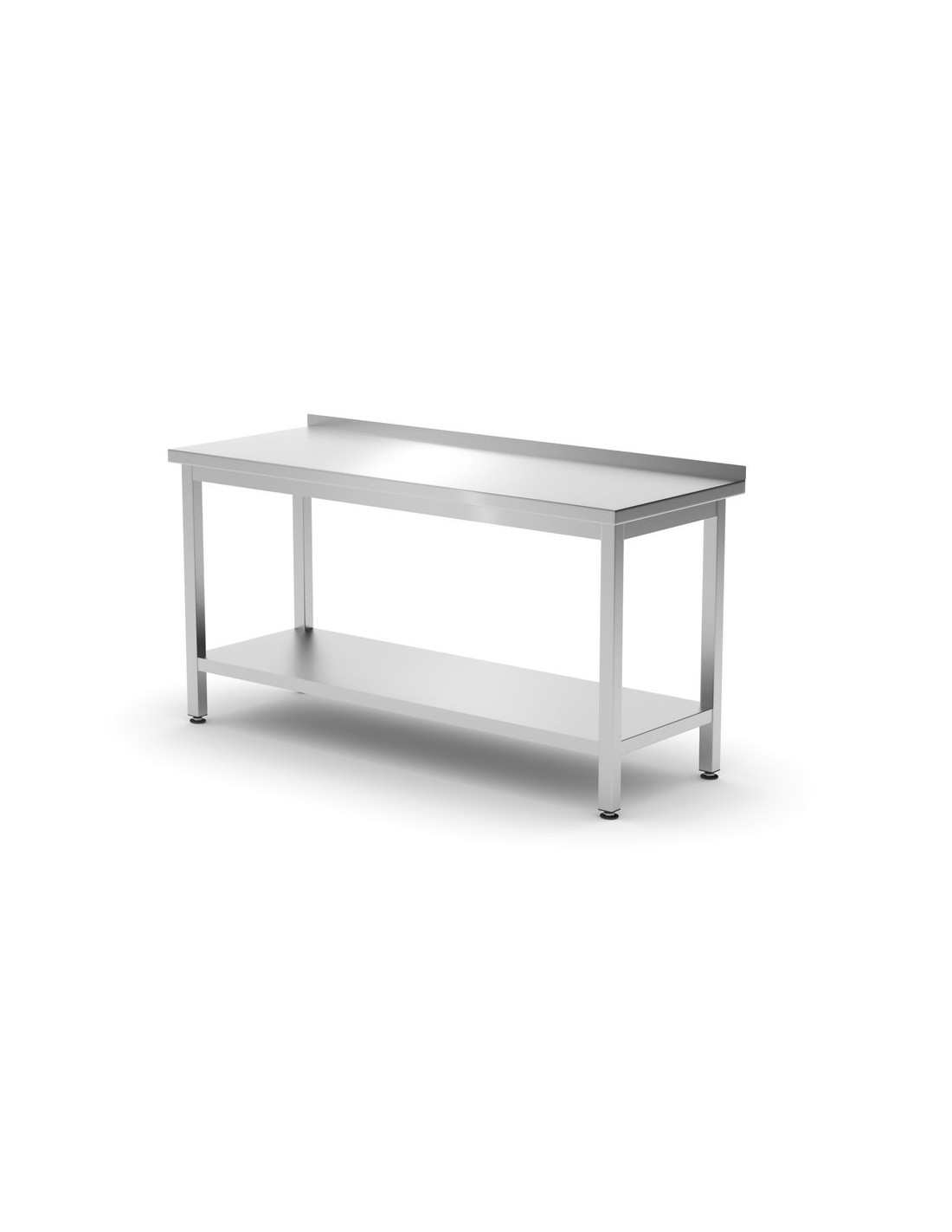 Tillverkad av rostfritt stål. Bultad konstruktion för självmontering, vilket möjliggör enkel transport och förvaring. Bänkskivan är fylld med en laminerad, vattentät förstärknings- och ljudisolerande skiva. Ungefärlig tillåten belastning på bänkskivan: 70 kg/m². Ben tillverkade av 40 x 40 mm profiler. Justerbara fötter i intervallet: +25/-5 mm.