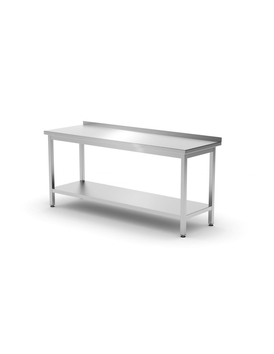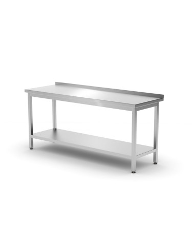 Tillverkad av rostfritt stål. Bultad konstruktion för självmontering, vilket möjliggör enkel transport och förvaring. Bänkskivan är fylld med en laminerad, vattentät förstärknings- och ljudisolerande skiva. Ungefärlig tillåten belastning på bänkskivan: 70 kg/m². Ben tillverkade av 40 x 40 mm profiler. Justerbara fötter i intervallet: +25/-5 mm.