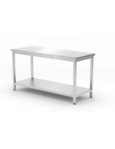 Centralt bord med hyllplan – bultad, djup 600 mm, hendi, profi line, 1600x600x(h)850mm