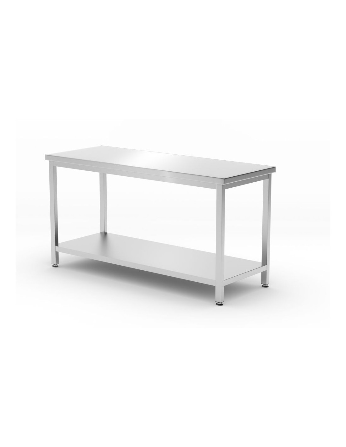 Tillverkad av rostfritt stål. Bultad konstruktion för självmontering, vilket möjliggör enkel transport och förvaring. Bänkskivan är fylld med en laminerad, vattentät förstärknings- och ljudisolerande skiva. Ungefärlig tillåten belastning på bänkskivan: 70 kg/m². Ben tillverkade av 40 x 40 mm profiler. Justerbara fötter i intervallet: +25/-5 mm.