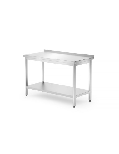 Tillverkad av rostfritt stål. Bultad konstruktion för självmontering, vilket möjliggör enkel transport och förvaring. Bänkskivan är fylld med en laminerad, vattentät förstärknings- och ljudisolerande skiva. Ungefärlig tillåten belastning på bänkskivan: 70 kg/m². Ben tillverkade av 40 x 40 mm profiler. Justerbara fötter i intervallet: +25/-5 mm.