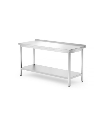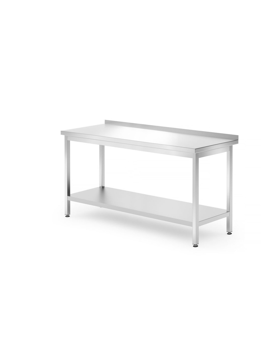 Tillverkad av rostfritt stål. Bultad konstruktion för självmontering, vilket möjliggör enkel transport och förvaring. Bänkskivan är fylld med en laminerad, vattentät förstärknings- och ljudisolerande skiva. Ungefärlig tillåten belastning på bänkskivan: 70 kg/m². Ben tillverkade av 40 x 40 mm profiler. Justerbara fötter i intervallet: +25/-5 mm.