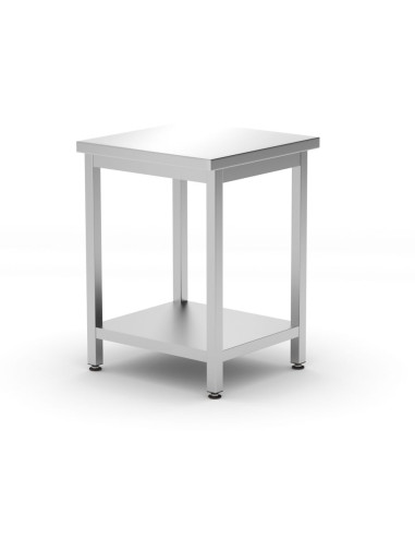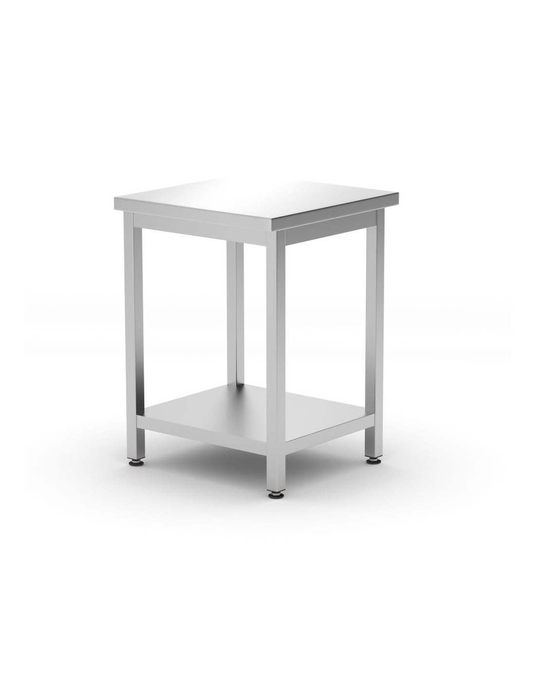 Centralt bord med hyllplan – bultad, djup 600 mm, hendi, kitchen line, 600x600x(h)850mm