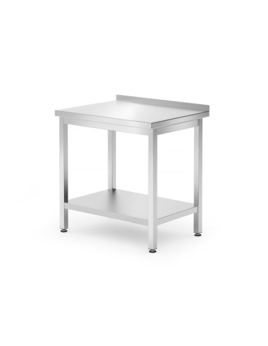Väggbord med hyllplan – bultad, djup 600 mm, hendi, kitchen line, 800x600x(h)850mm
