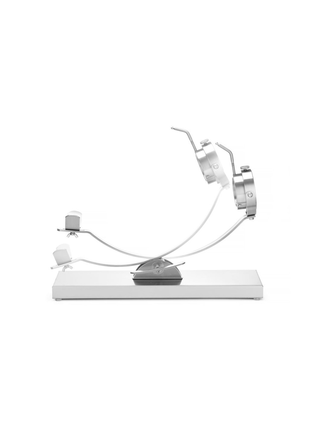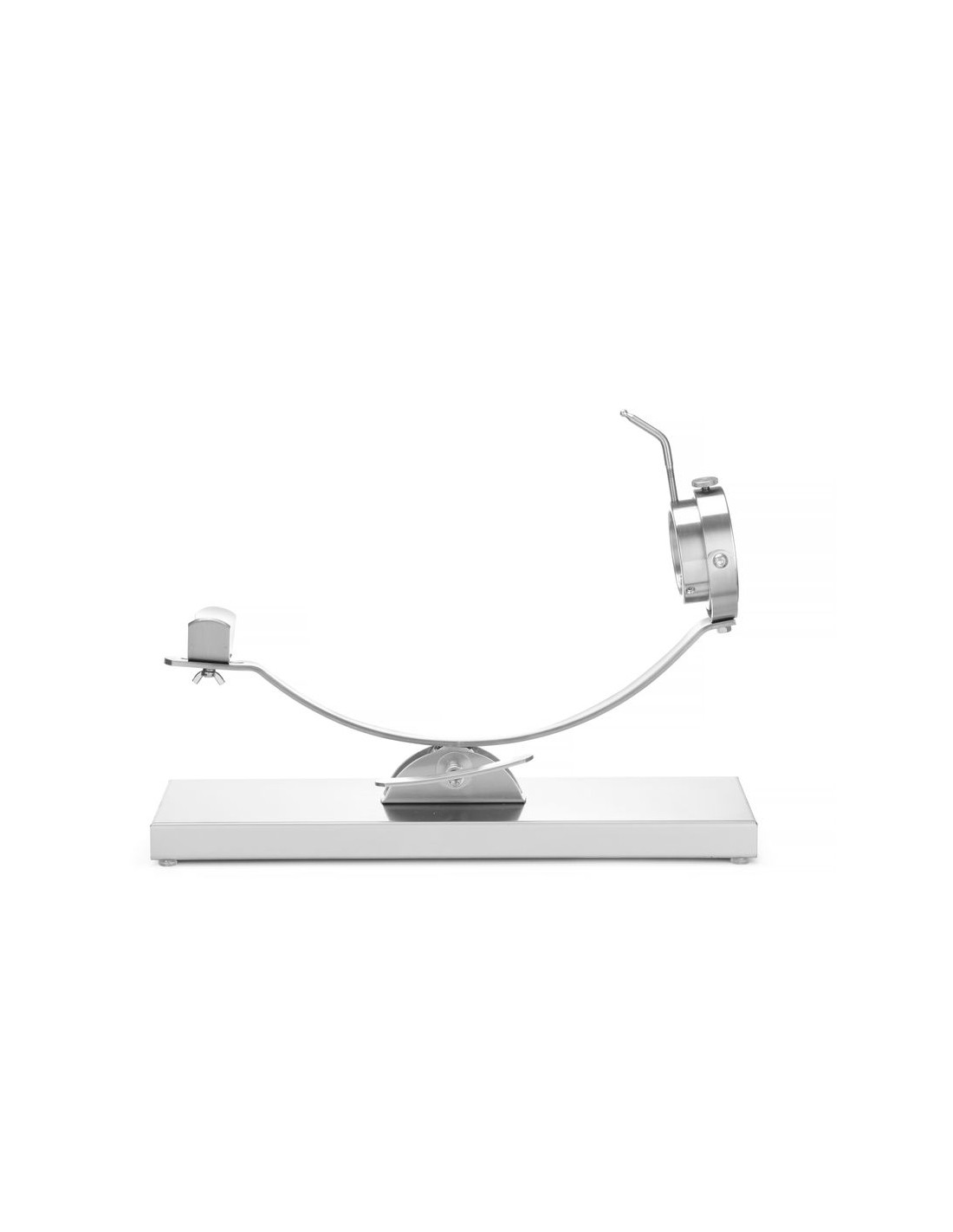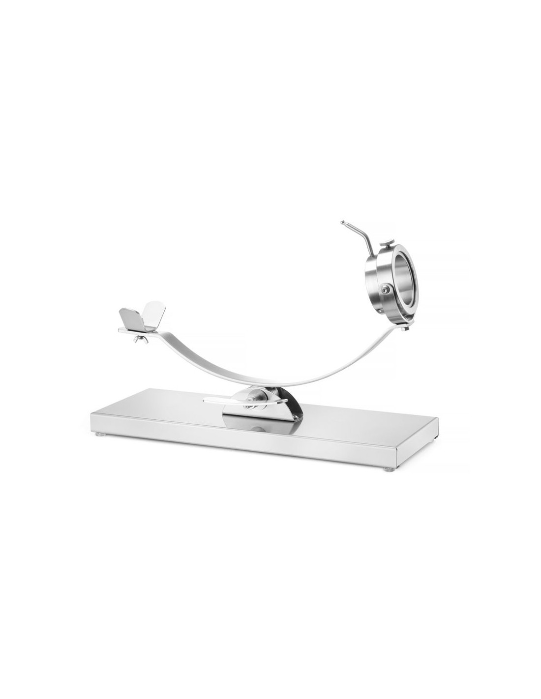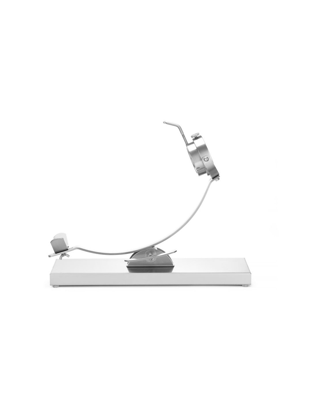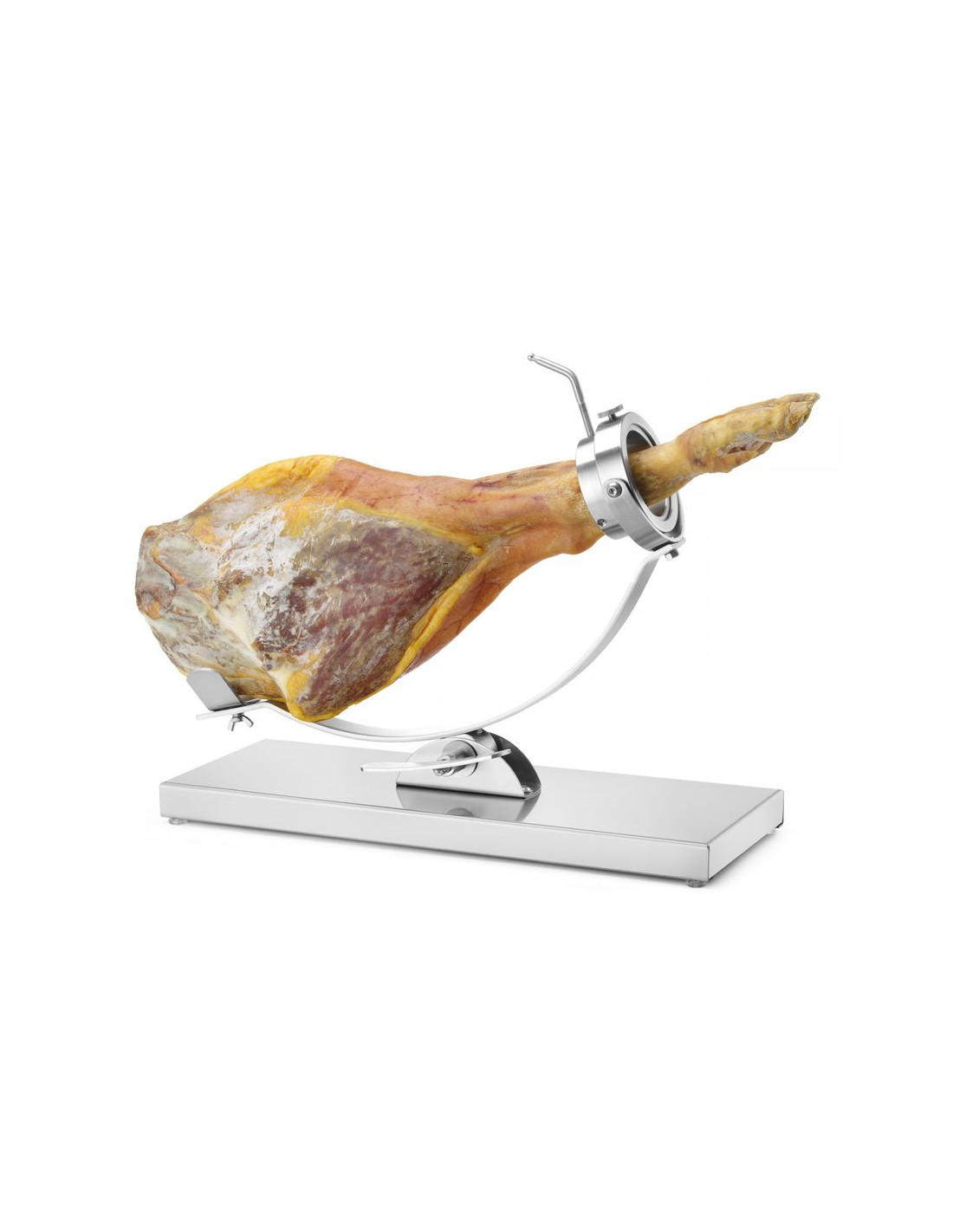 Stativ och bas tillverkade av rostfritt stål med satinfinish. Skinkan fästs med en skruv i ringen (Ø80 mm). Ringen gör att skinkan kan roteras vilket ger enkel åtkomst till varje köttbit. Hållare med lutningssystem. Avstånd mellan monteringsskruvarna: ca 480 mm. Basens mått: 570x215x(H)35 mm. Avsedd för självmontering (insexnyckel ingår i setet).