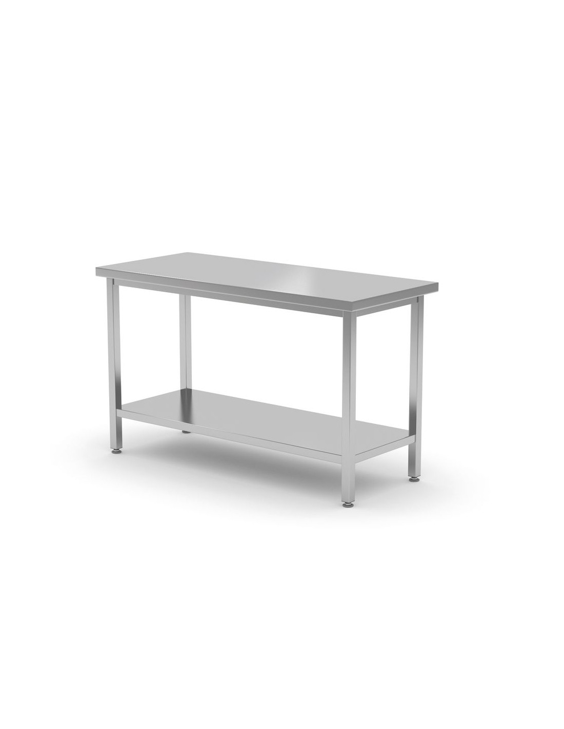Åtkomst till arbetsytan från alla sidor. Nedre hyllplan utan fyllning, placerad på en höjd av 160 mm från golvet, ej justerbar, svetsad.