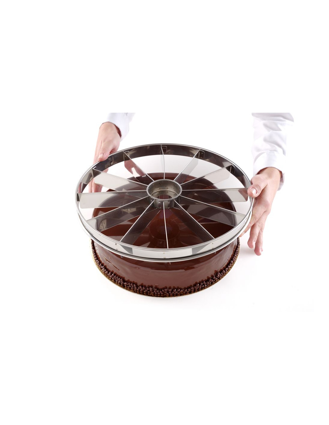 För att skära en rund paj eller kaka i lika delar.