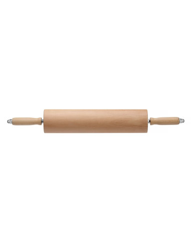 Tillverkad av massivt bokträ. Med smidigt löpande kullager i förnicklade stål. Ergonomiska, konturerade handtag. En robust metallaxel inuti förstärker kavelstrukturen. Kavel med kod 515020 är på grund av sin storlek och vikt lämplig för att kavla en stor mängd deg på en gång. Ej diskmaskinssäker.
