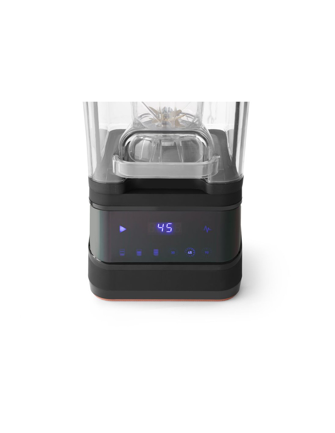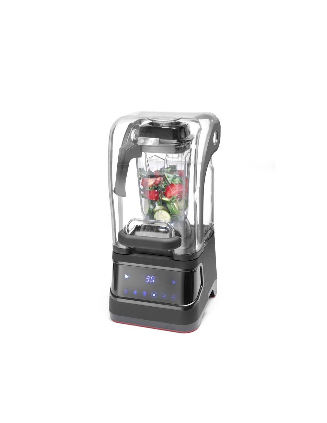 Ljudhölje av polykarbonat. Säkerhetslåssystem för att förhindra oavsiktlig aktivering av mixern om kannan inte är på plats eller ljudhöljet inte är helt stängt. Digital pekskärmskontrollpanel. Höghastighetsmotor med variabel bladhastighet från 8350 varv/min upp till 24800 varv/min (utan last). 3 hastighetsnivåer: LÅG – 8350 varv/min, MEDIUM – 13500 varv/min, HÖG – 24800 varv/min (utan last). 3 tidsinställningar: 30, 45, 90 sekunder.