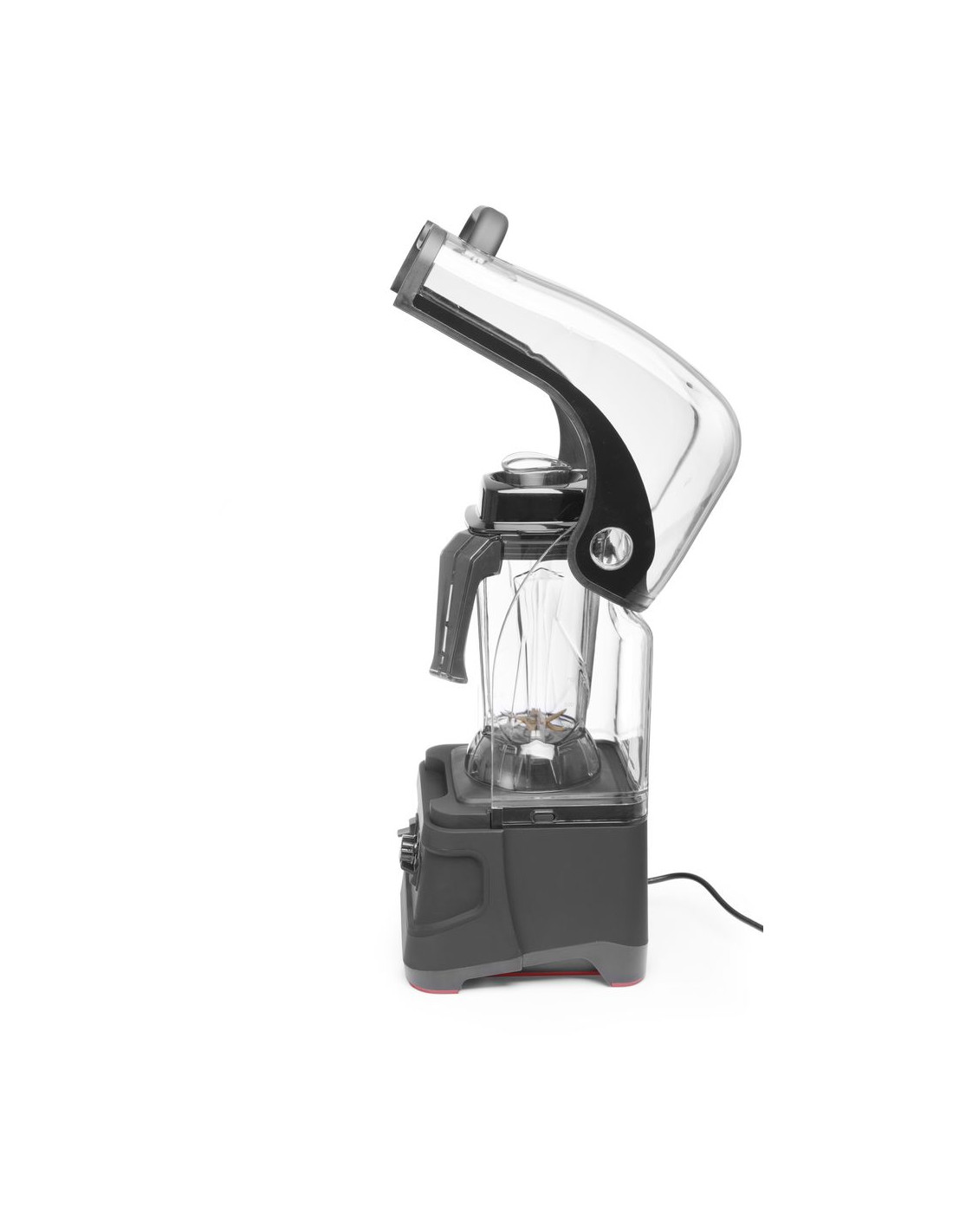 Ljudhölje av polykarbonat. Säkerhetslåssystem för att förhindra oavsiktlig aktivering av mixern om kannan inte är på plats eller ljudhöljet inte är helt stängt. Manuell kontrollpanel. Med steglös hastighetskontroll. Höghastighetsmotor med variabel hastighet på bladet från 16000 varv/min upp till 24800 varv/min (utan belastning).