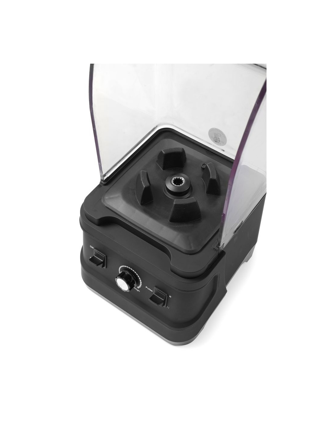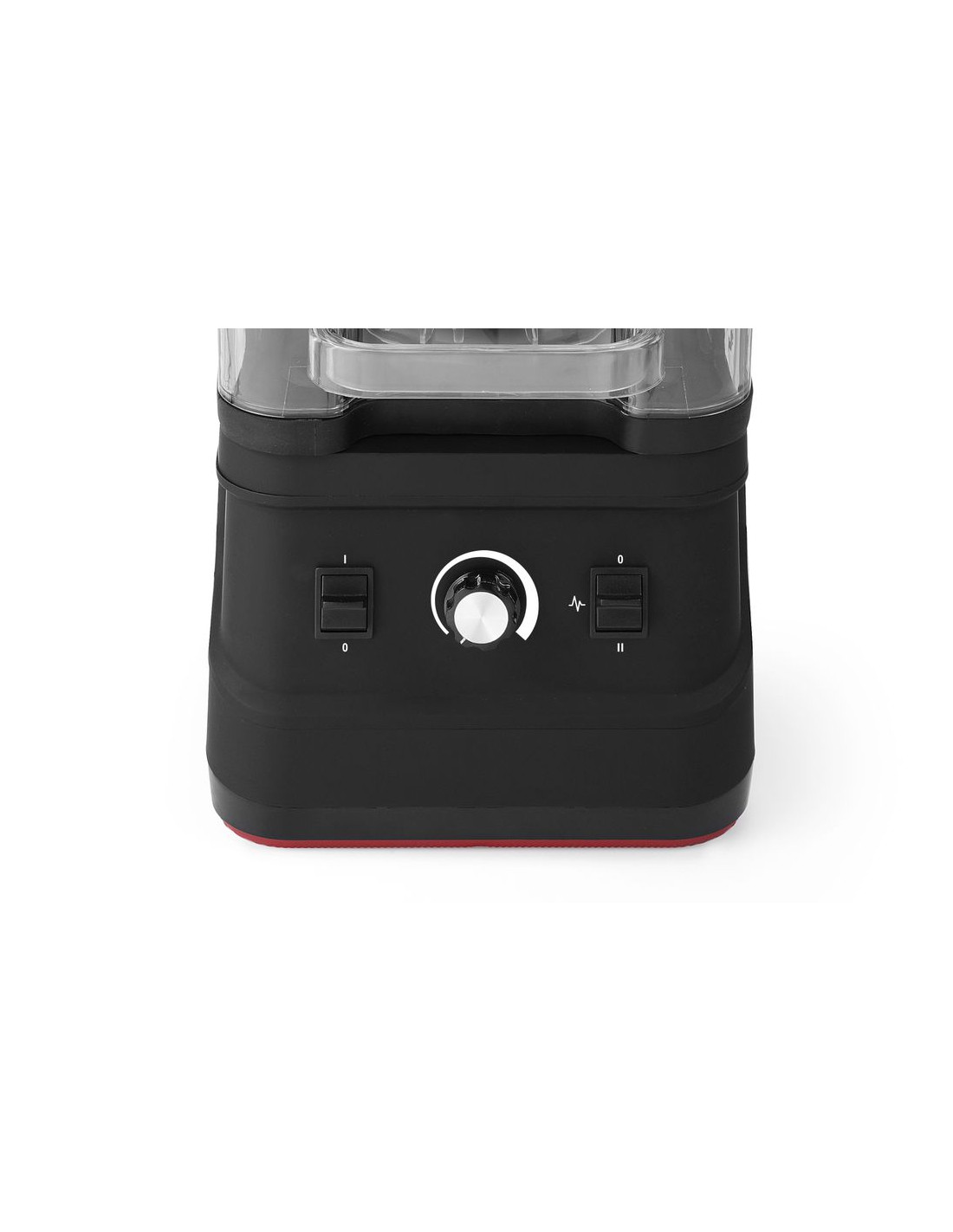 Ljudhölje av polykarbonat. Säkerhetslåssystem för att förhindra oavsiktlig aktivering av mixern om kannan inte är på plats eller ljudhöljet inte är helt stängt. Manuell kontrollpanel. Med steglös hastighetskontroll. Höghastighetsmotor med variabel hastighet på bladet från 16000 varv/min upp till 24800 varv/min (utan belastning).