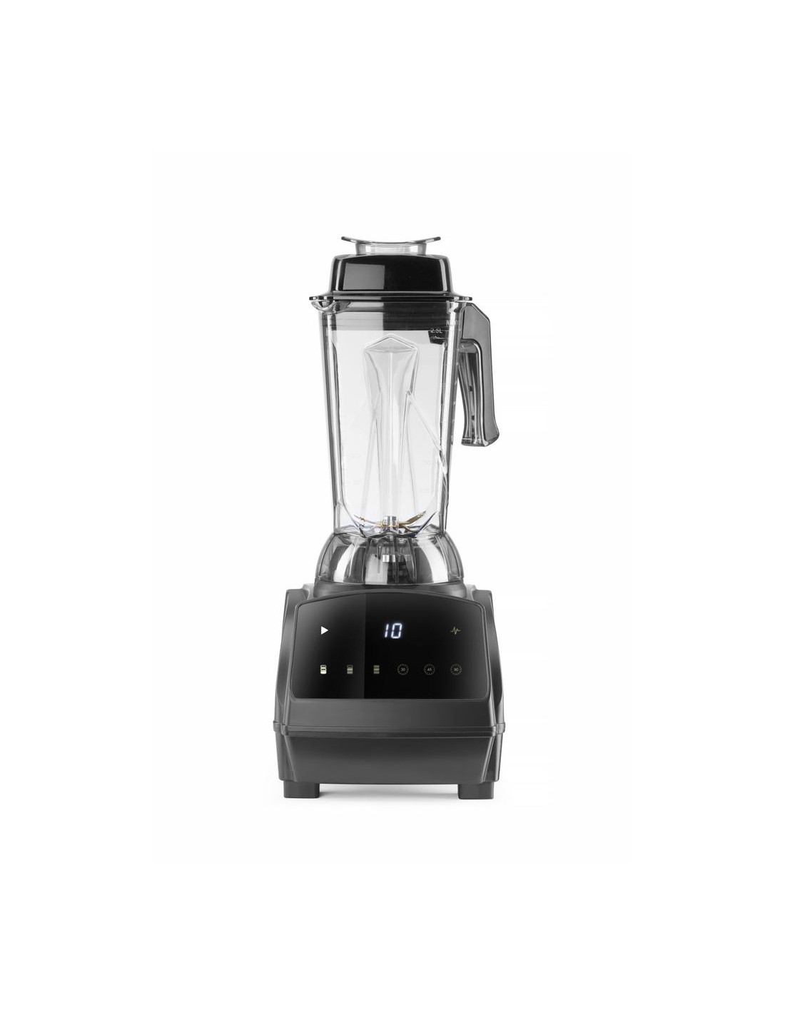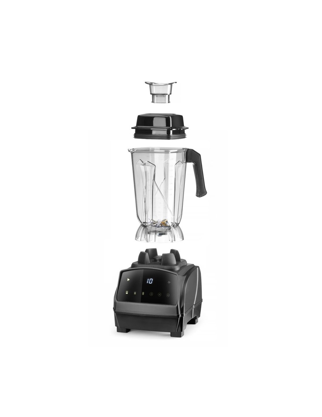 Lämplig för: mixning av frukt och grönsaker, förberedelse av cocktails, smoothies och krossad is. Hölje av ABS. Slitstark 2,5-liters kanna, fastslutande lock och lock av BPA-fri tritan. Avtagbart blad av rostfritt stål med titanbeläggning. Kontrollpanel med digital pekskärm. 3 hastighetsnivåer: LÅG – 8350 RPM, MEDIUM – 13 500 RPM, HÖG – 24 800 RPM (utan belastning). Med pulsfunktion. 3 tidsinställningar: 30, 45, 90 sekunder. Säkerhetslås förhindrar aktivering av mixern utan kanna. Överhettnings- och överströmsskydd. Ingår: tryckknapp av polypropen.