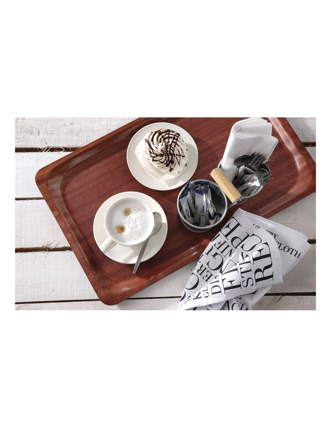 AmerBox halkfria rektangulära serveringsfat är utformat för hållbarhet och tillförlitlighet i professionella livsmedelsmiljöer. Dess robusta laminathölje, i kombination med en halkfri gummibeläggning, säkerställer stabilitet vid transport av mat och dryck, vilket minskar risken för spill.