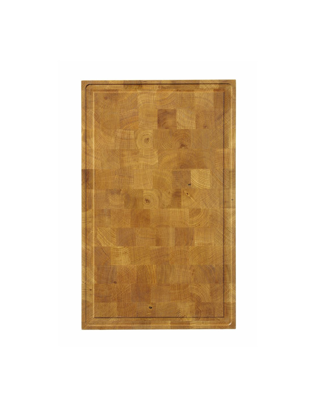 Tillverkad av oljad ek av högsta kvalitet, mycket tät och massiv – stöttålig och reptålig. Oljad med livsmedelssäker olja – vilket förlänger livslängden och de visuella egenskaperna hos naturligt trä. Med 2 underskurna handtag (frästa handtag) – kan enkelt flyttas trots storleken. Ena sidan med ränna runt kanten för att förhindra att vätskor spills på bänkskivan. Ej diskmaskinssäker. Kräver regelbundet träunderhåll med naturlig, livsmedelssäker olja.