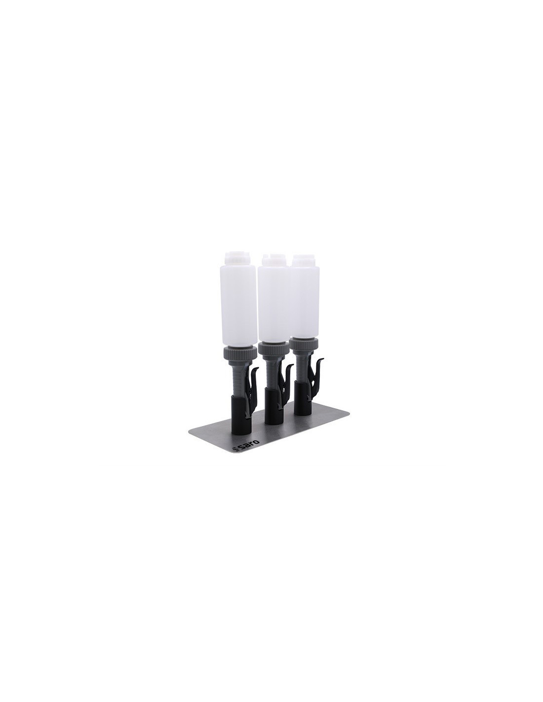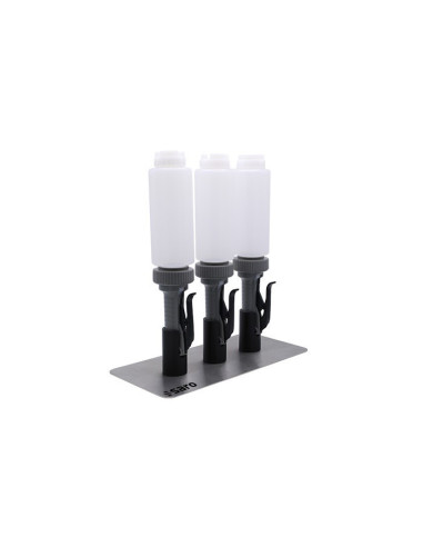 - 3 handpumpar med 710 ml vardera (2 delar vardera) + stativ i rostfritt stål