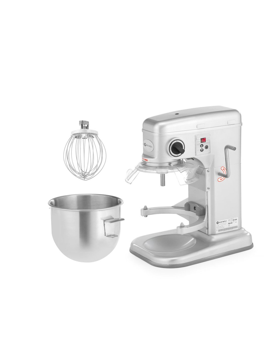 Hendi Kitchen Line planetmixer 7 l är en högkvalitativ, mångsidig apparat avsedd för att knåda olika typer av deg och vispa äggvitor, för användning både i professionella cateringanläggningar och hemma.