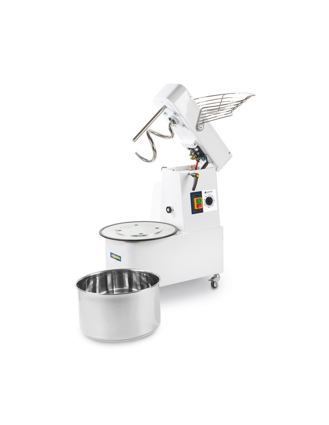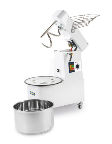 HENDI spiralmixer med upphöjningshuvud och avtagbar skål blandar effektivt tung deg upp till 35 kg/h. Spiraldesignen säkerställer en homogen deg. Den är perfekt för till exempel pizzerior eller bagerier.