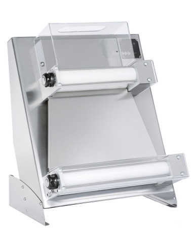 Hölje tillverkat av rostfritt stål och HDPE. Idealisk för utkavling av kall deg. Värmer inte degen under drift. 2 uppsättningar justerbara valsar. Degtjocklek: från 0 till 4 mm. Separata valsskydd. Elektrisk fotpedal ingår. Kavlad degbredd: 26 till 45 cm.