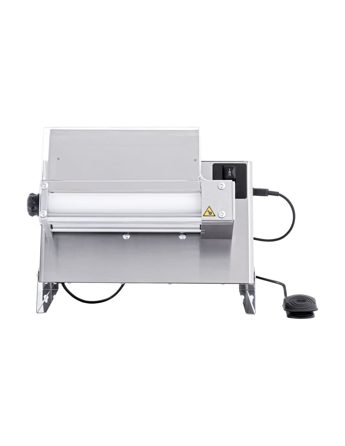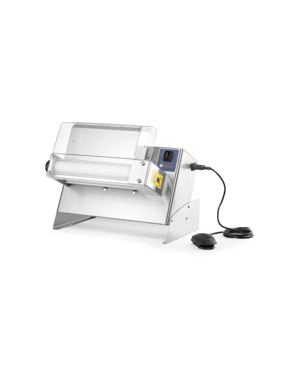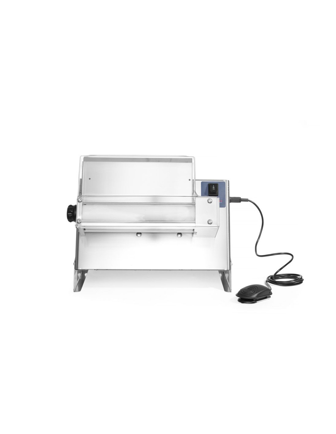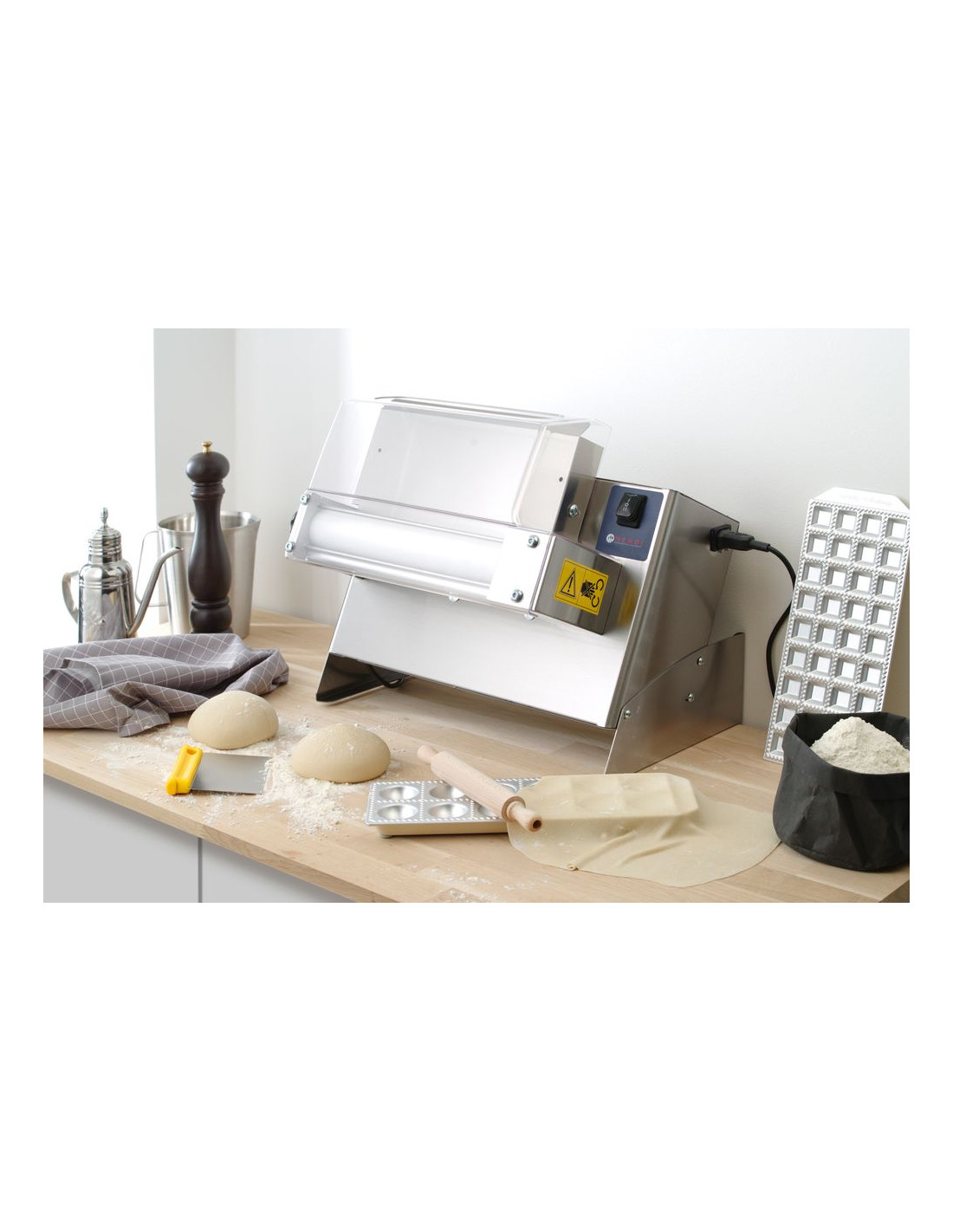 Hölje tillverkat av rostfritt stål och HDPE. Idealisk för utkavling av kall deg. Värmer inte degen under drift. 2 uppsättningar justerbara valsar formar degen till en skiva med jämn tjocklek från 0 till 4 mm. Separata valsskydd. Max bearbetningsbredd: 140-300 mm.