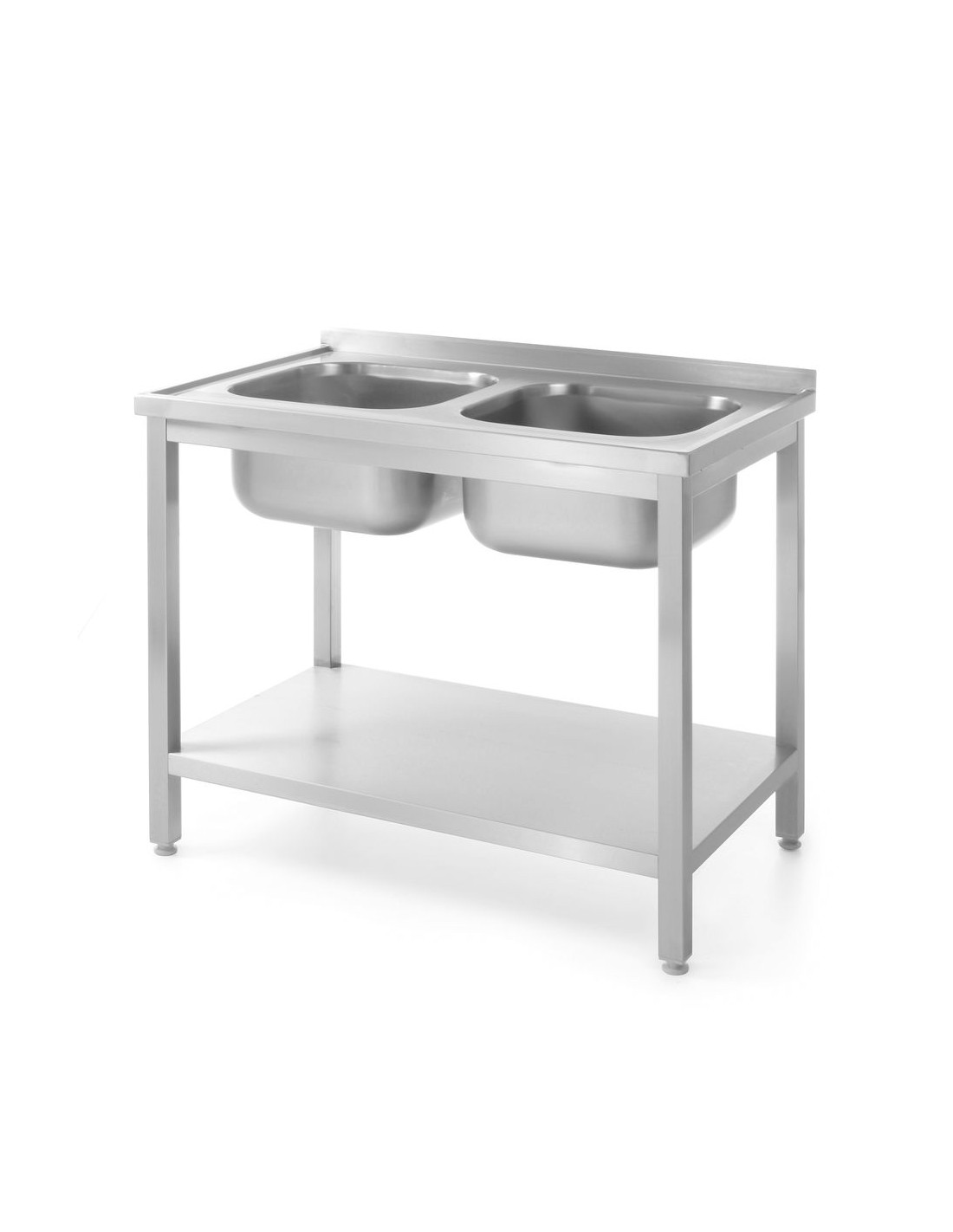Bultad konstruktion för självmontering, vilket möjliggör enkel transport och förvaring. Tillverkad av rostfritt stål. Avloppskammaren är sömlöst bultad i bänkskivan, pressad ur en enda plåt av rostfritt stål. Diskbänkens mått: 400x400x(H)250 mm. Standardprägling i botten för sifonen: Ø50 mm. Hål för kran: Ø30 mm. 10 mm prägling av bänkskivan för att förhindra att vatten rinner ut. Den ungefärliga tillåtna belastningen på bänkskivan är 70 kg/m². Stänkskydd 40 mm högt för att skydda väggen mot fläckar. Bordets bakre ben är flyttade 50 mm från väggen för att underlätta väggmontering. Ben tillverkade av 40x40 mm profiler. Justerbara fötter i intervallet: +25/-5 mm.