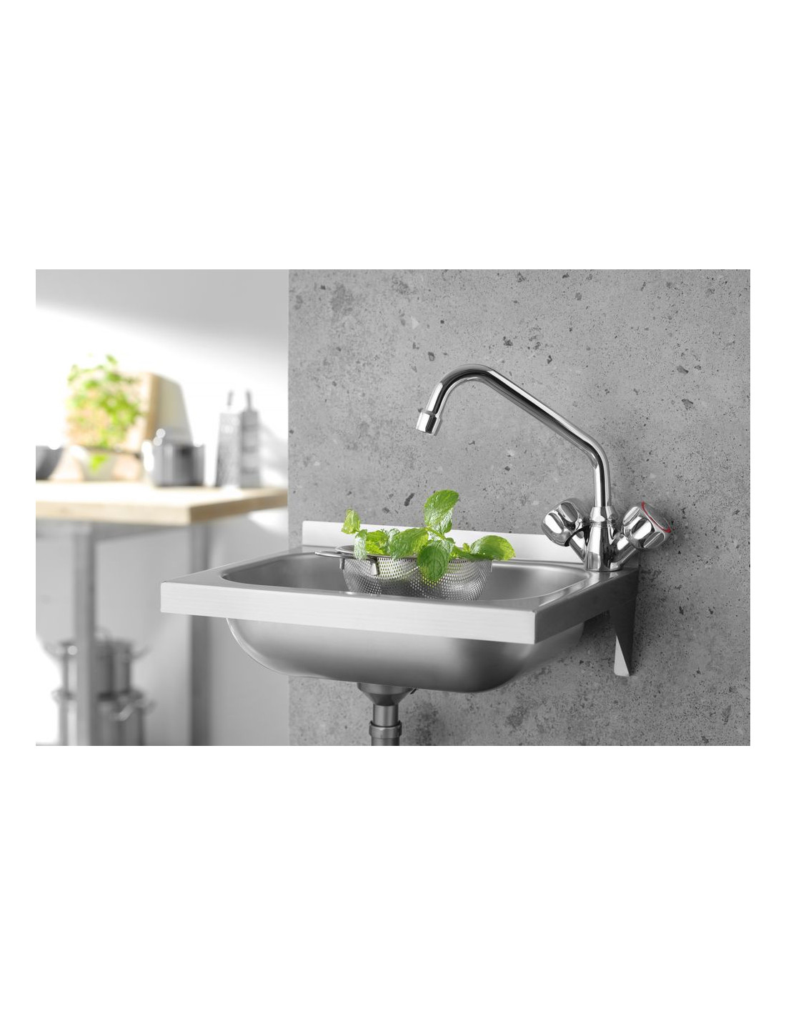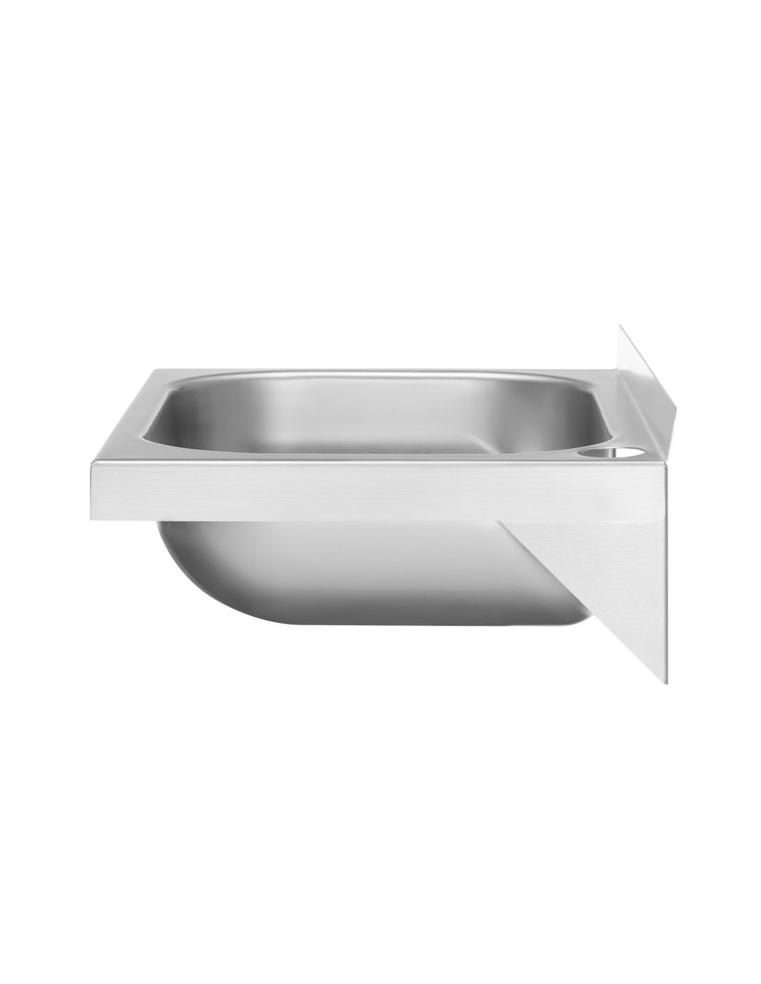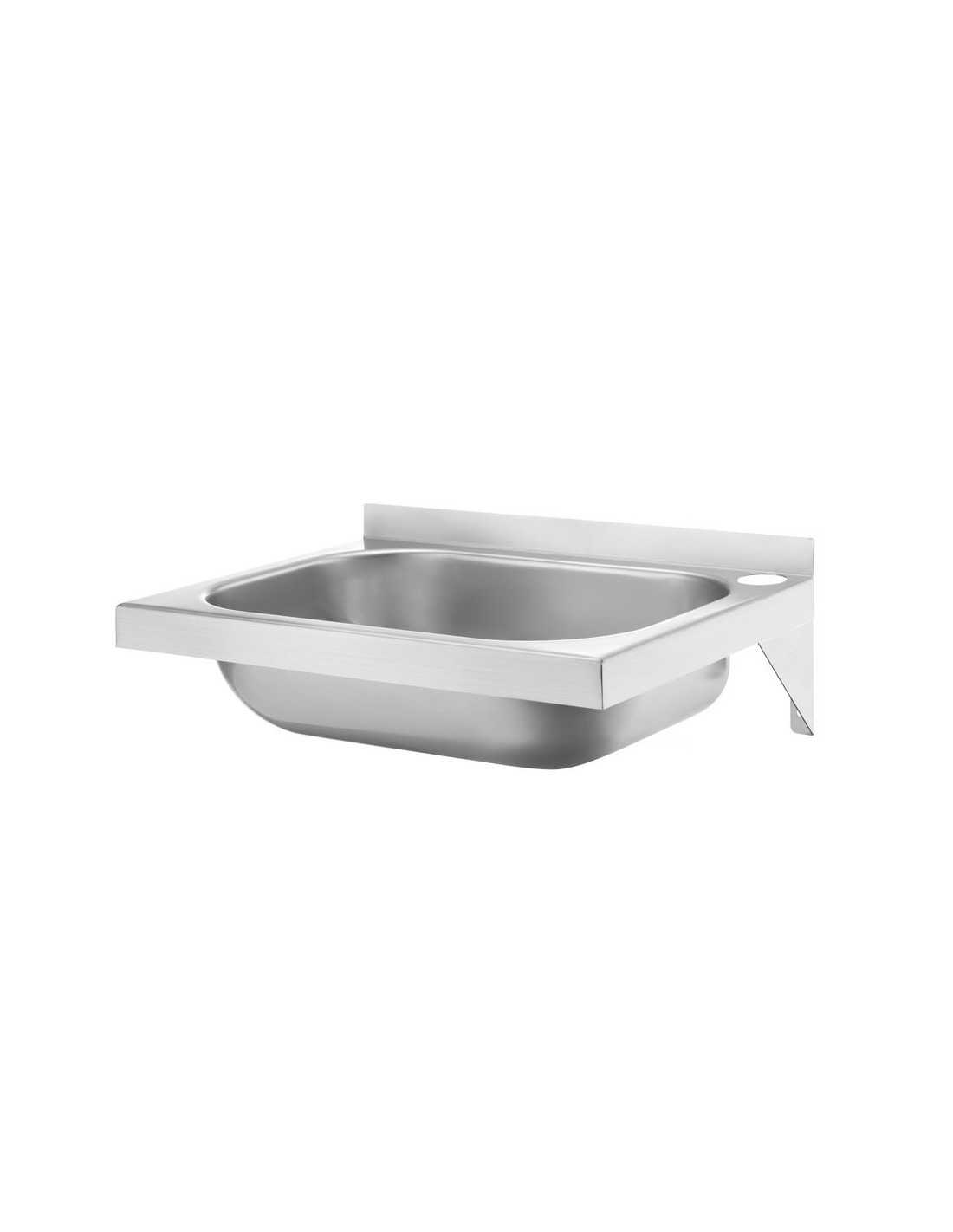 Tillverkad av slitstarkt rostfritt stål (AISI 304). Avsedd för väggmontering. Innermått 350x250x(H)103mm. Ø35mm öppning för kranmontering, passar HENDI 970522 kran. Ø51mm avlopp kompatibelt med standardvattenlås.