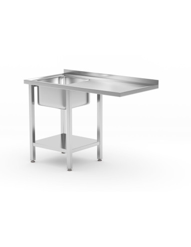 HENDI-bordet med diskho, diskmaskinsutrymme och hyllplan är perfekt för alla professionella kök som har diskmaskin. Det ger gott om plats för att placera en diskmaskin eller kylskåp under bänkskivan. Enkel att montera med bultar, men ändå mycket hållbar tack vare användningen av högkvalitativt rostfritt stål. Finns med diskho på vänster sida (237519) eller på höger sida (237526).