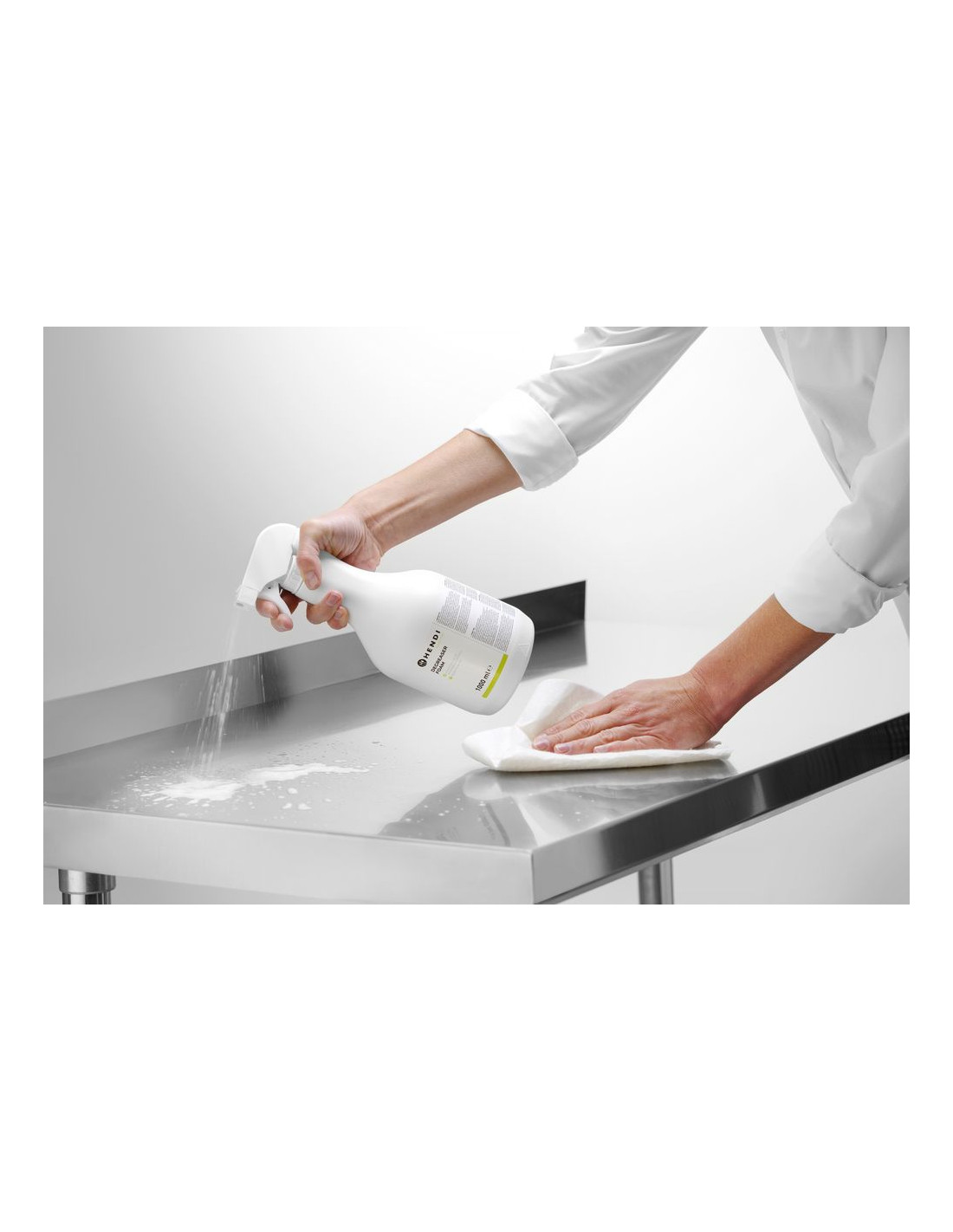 Avlägsnar fett och smuts utan att behöva skrubba kraftigt. Detta kraftiga avfettningsmedel är perfekt lämpat för användning i matlagningsområden på hårda ytor som köksbord i rostfritt stål.