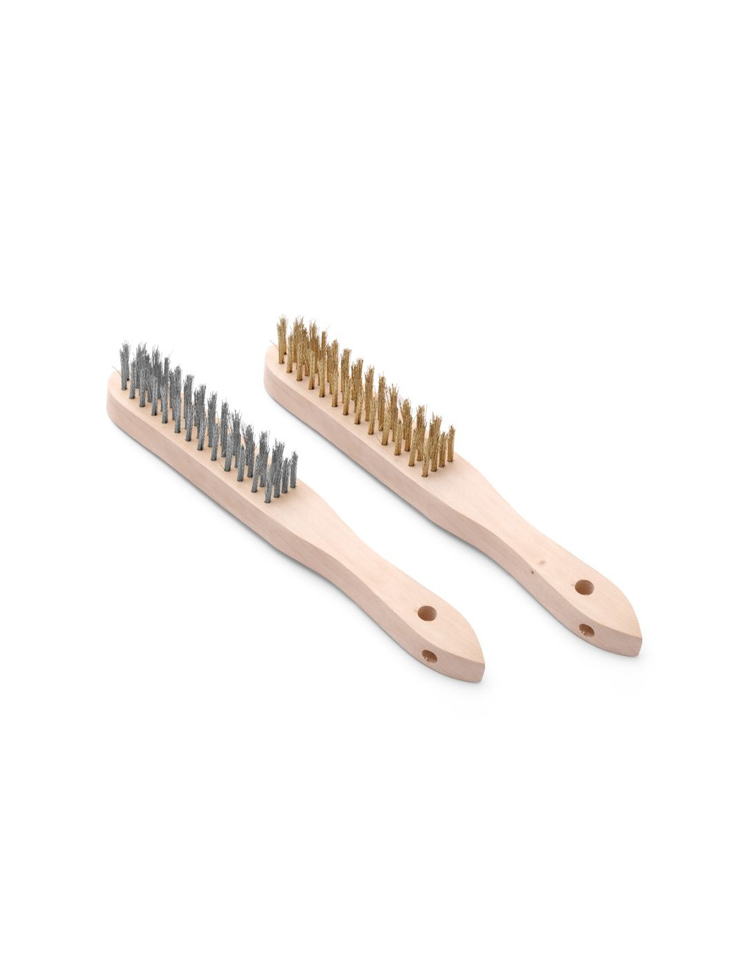 Set med 2 olika stålborstar med 4 rader med 14 borst. Består av en borste med borst i rostfritt stål och en med mässingsborst.