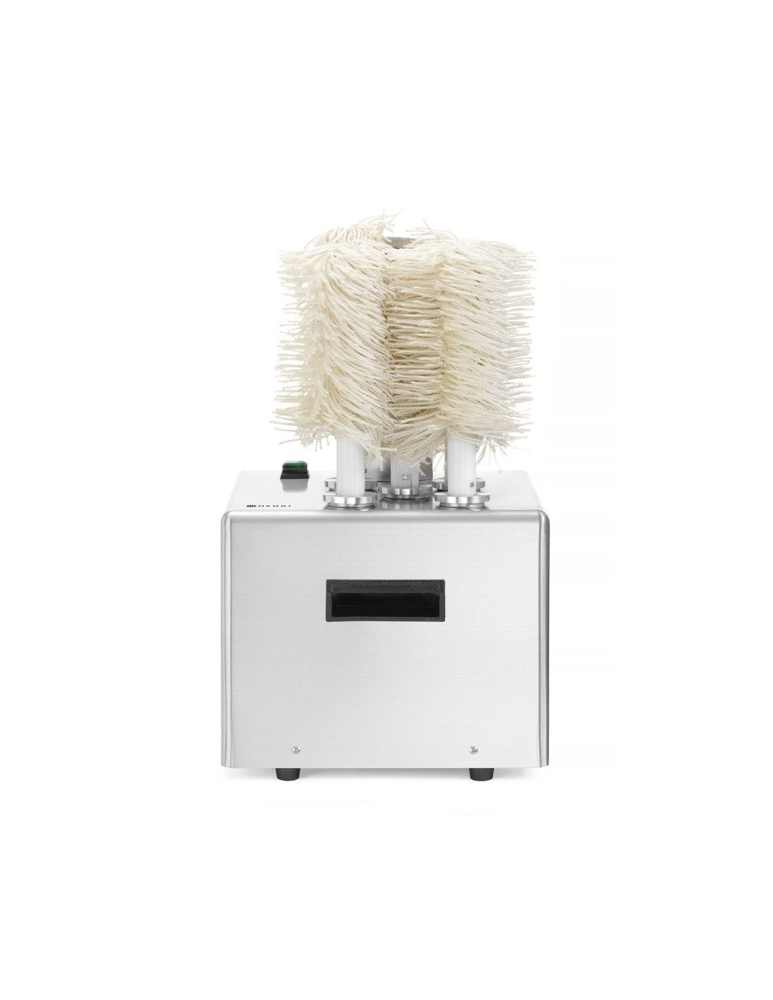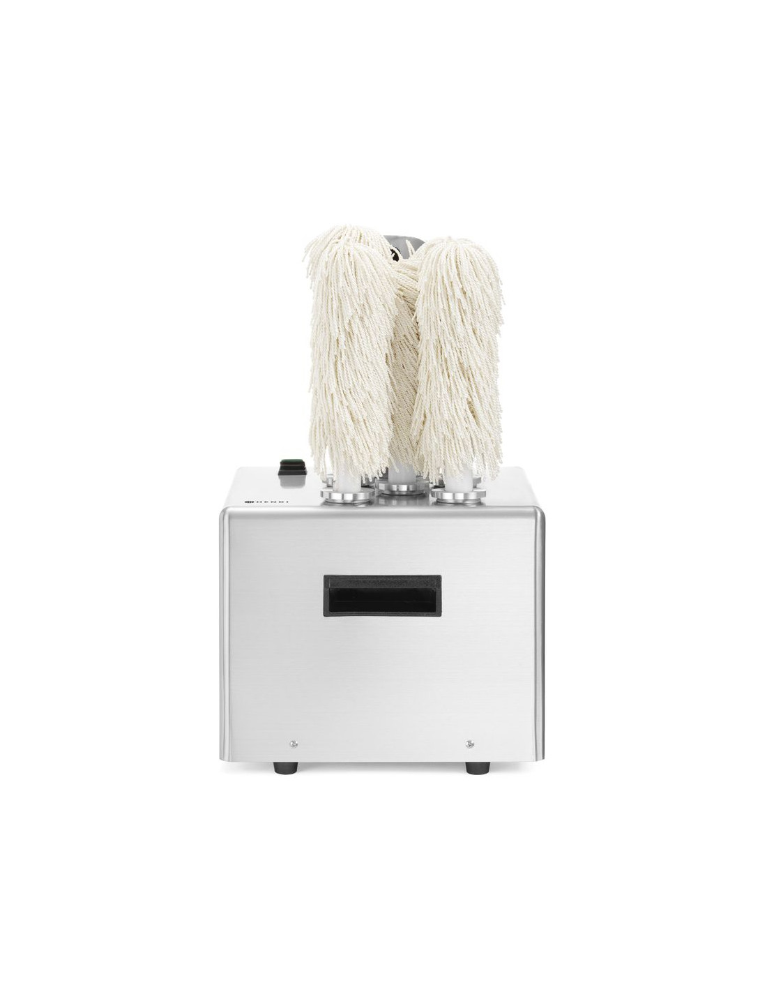 HENDI glaspolerare torkar och polerar enkelt nytvättade glas med kraften av värme. Den levereras med 5 avtagbara borstar med mikrofiberborst för extra poleringskraft. Borstarna tar bort vattenfläckar på nolltid och kan polera upp till 330 glas i timmen.