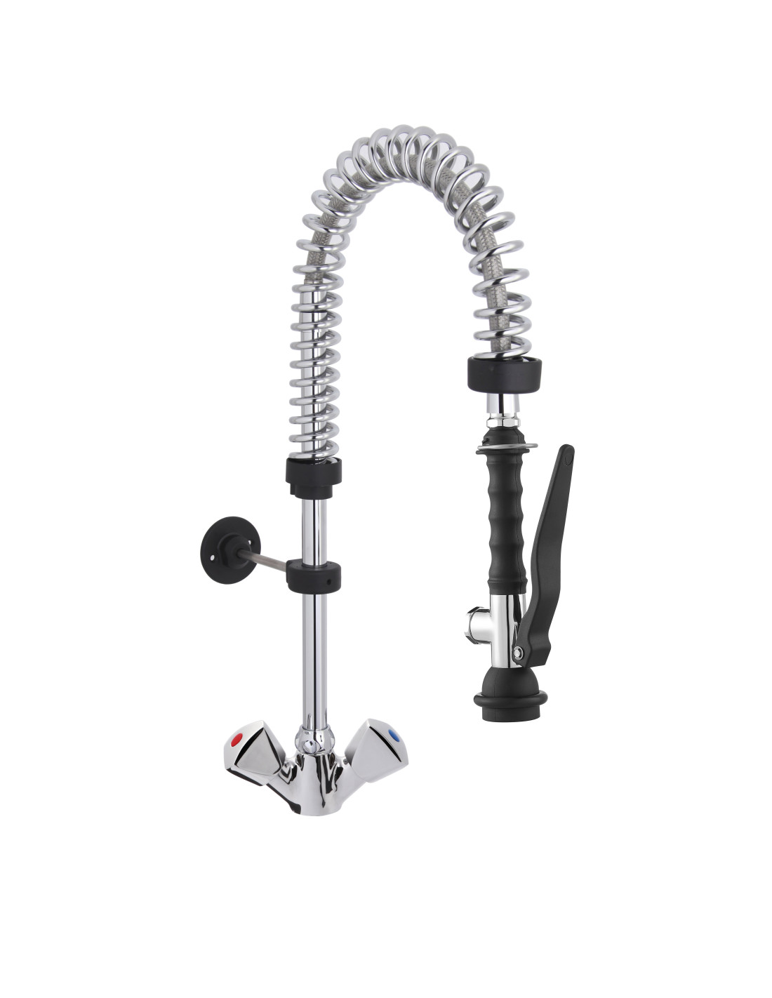 - Svart plastspak för vattentillförsel, ventiler för varmt/kallt val (blandningsventil) förkromad