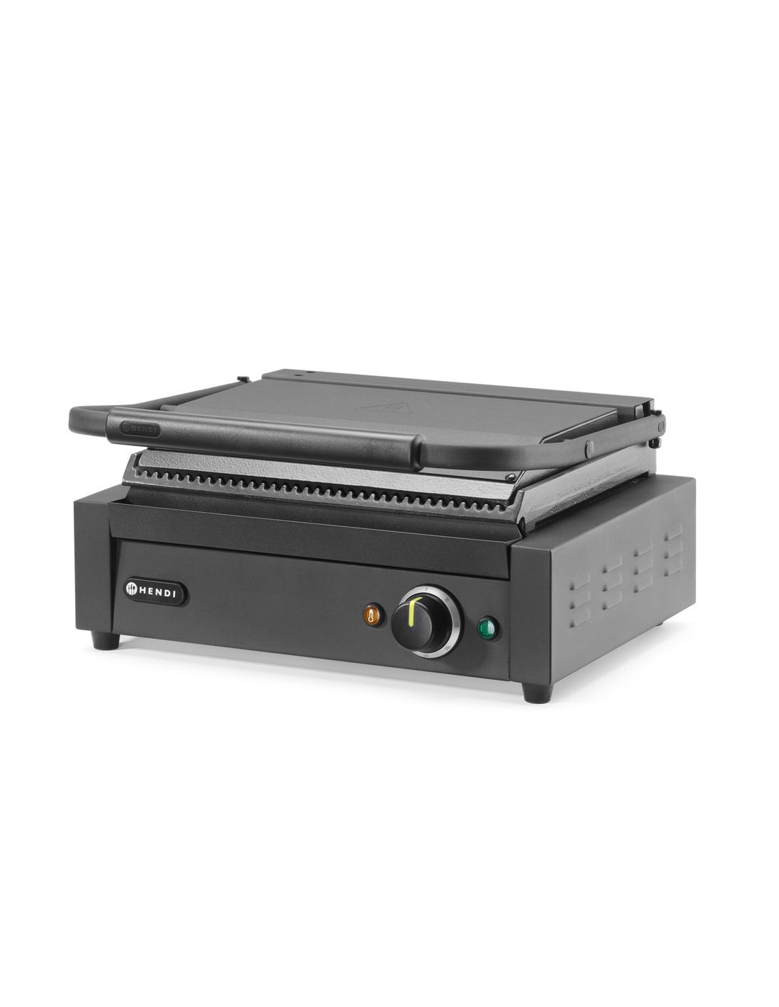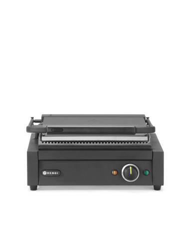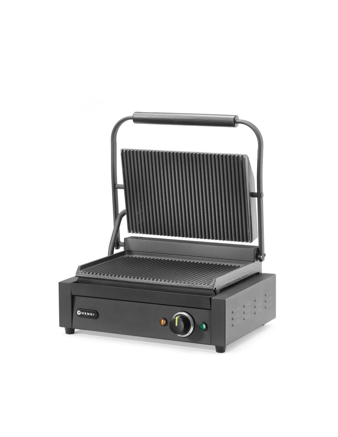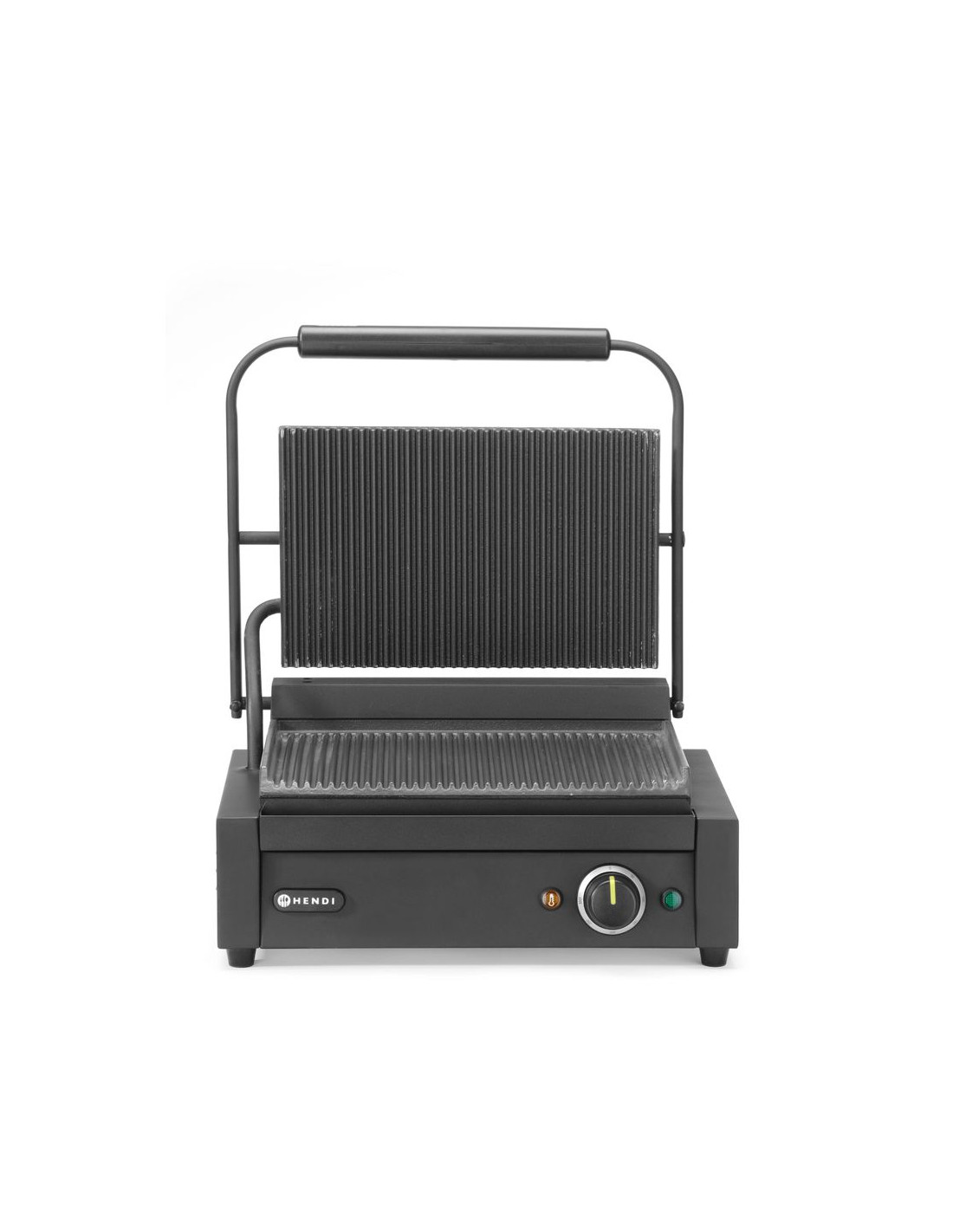 Perfekt för grillning och uppvärmning av bröd, köttbitar, korv, grönsaker etc. Emaljerade gjutjärnsstekplattor, enkla att rengöra och underhålla. Hölje tillverkat av rostfritt stål garanterar hållbarhet. Högpresterande värmeelement värmer snabbt upp grillarna. Temperaturen kan ställas in steglöst med termostaten upp till 300 °C. Ventilationsöppningar skyddar grillen mot överhettning. Bottengallret är utrustat med bak- och sidokanter och en avtagbar droppbricka, vilket gör rengöringen enklare. Lyft det övre gallret med det värmebeständiga handtaget och lås det i valfritt läge tack vare den fjäderbelastade mekanismen. Med gummifötter, vilket minskar oavsiktlig rörelse under användning. Grillrengöringsborste ingår.