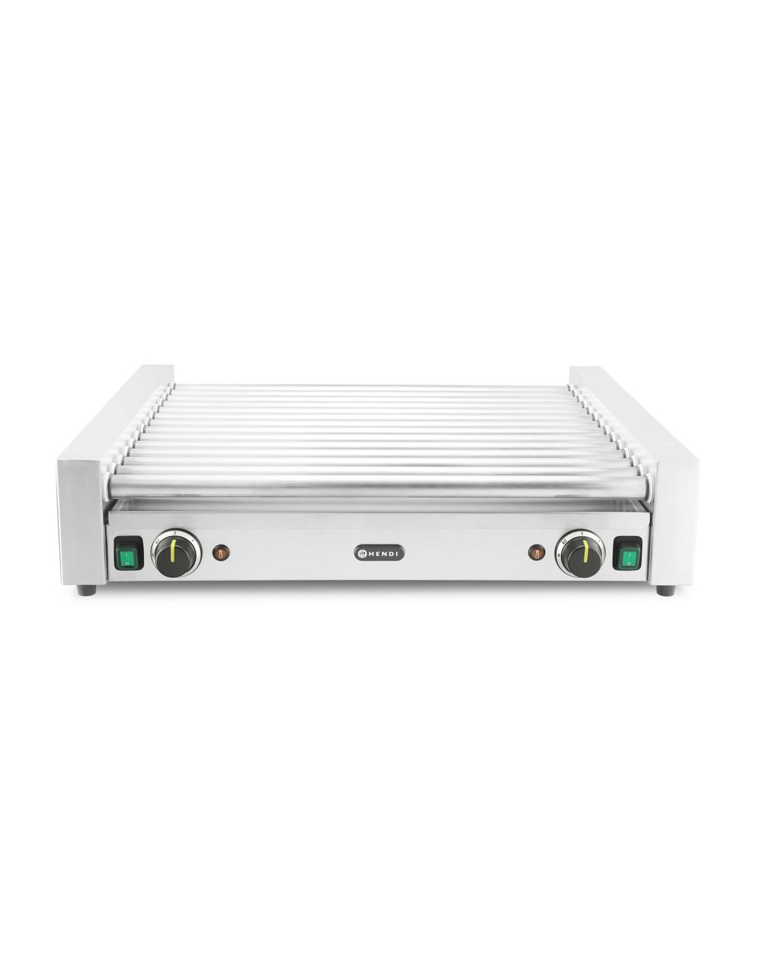 HENDI korvrullgrill XL – 2 zoner är byggd med ett hållbart hölje och rullar, den värms upp snabbt och bibehåller en jämn temperatur tack vare snabb värmeåtervinning. Med 2 oberoende styrda värmezoner och en rullbredd på 65 cm erbjuder den flexibilitet under hektiska perioder. En avtagbar droppbricka säkerställer enkel rengöring och hygienisk skötsel.