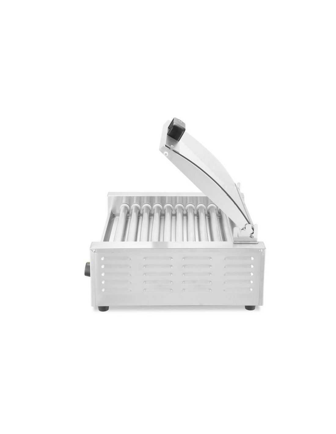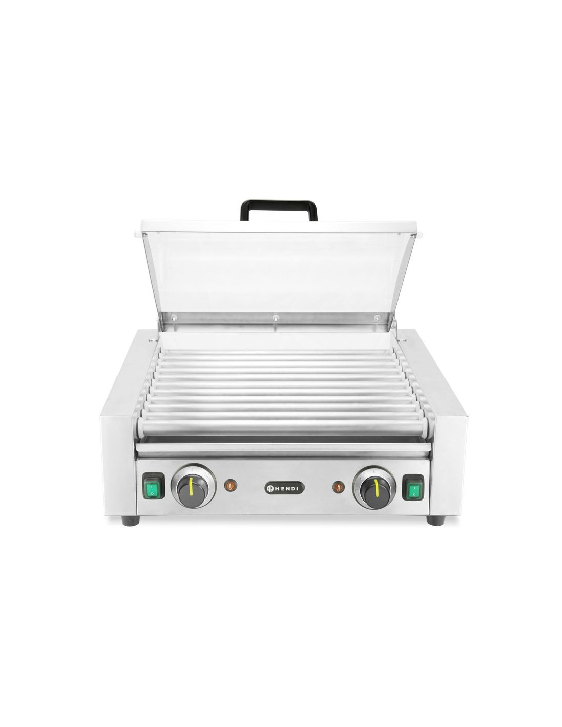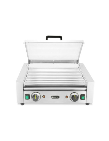 HENDI korvrullgrill – 2 zoner med energibesparande lock har ett slitstarkt hölje och rullar i rostfritt stål, utformade för snabb uppvärmning och jämn temperaturhållning tack vare snabb värmeåtervinning. Utrustad med ett lock av härdat glas hjälper den till att behålla värmen och förbättra hygienen under drift. Med 2 oberoende styrda värmezoner och en rullbredd på 45 cm erbjuder den flexibilitet under hektiska perioder. En avtagbar droppbricka säkerställer enkel rengöring och stöder höga hygienstandarder.