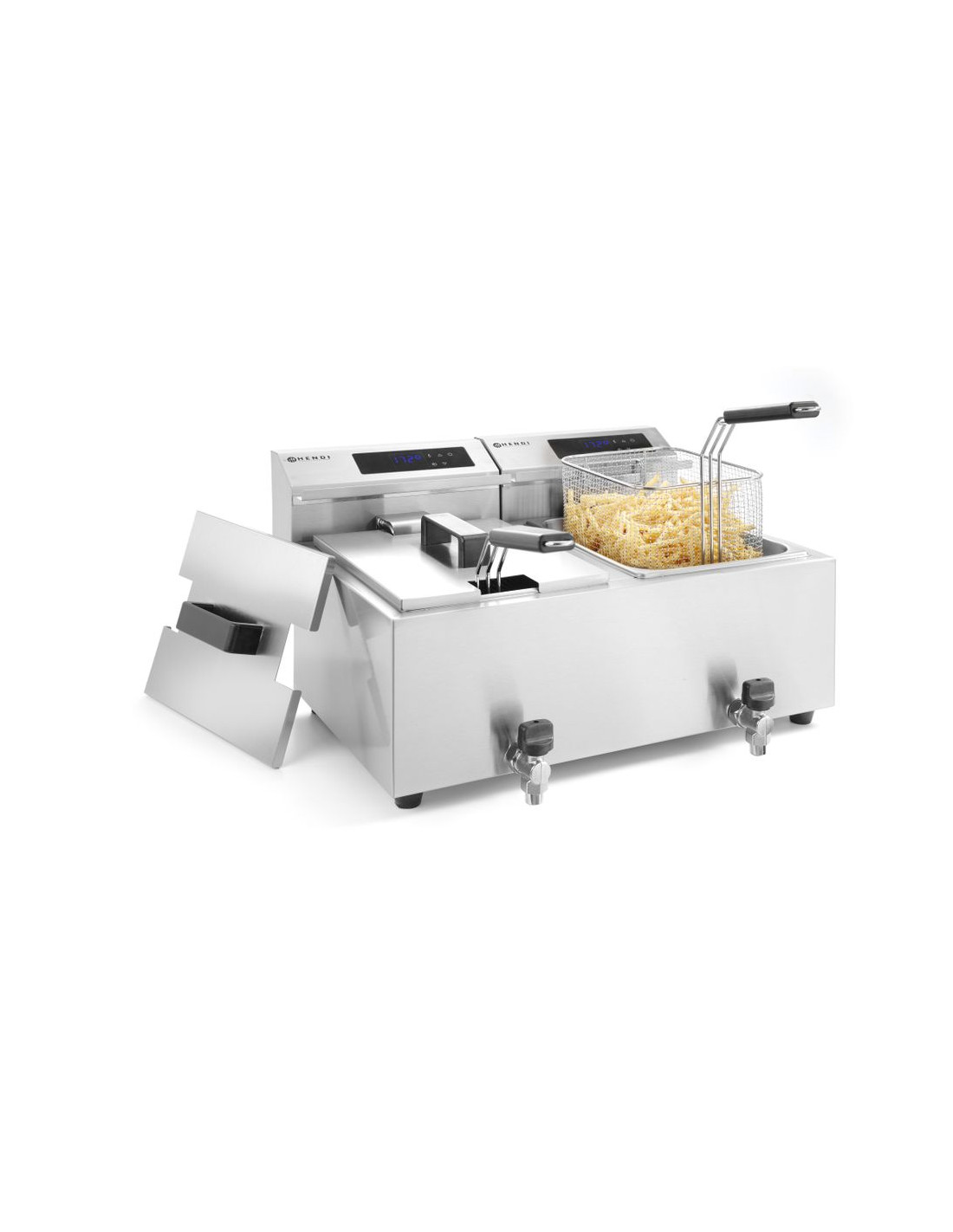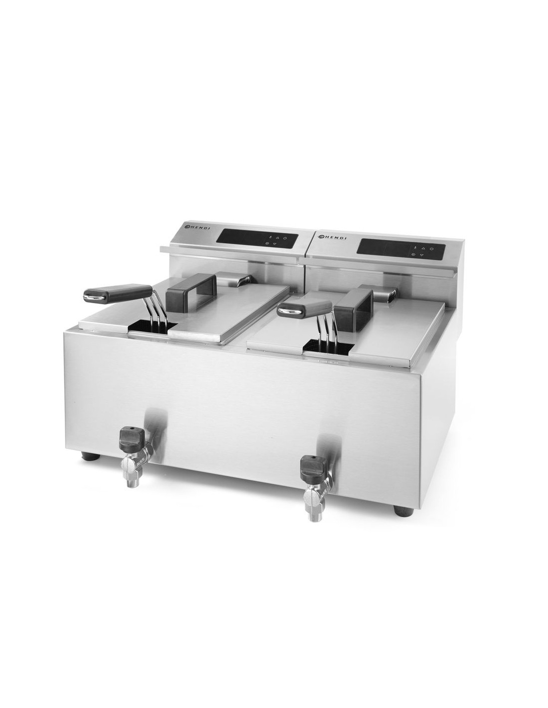 Fritös med avtappningskran digital - 2 x 8 l, hendi, profi line, 16l, 230v/7000w, 605x515x(h)350mm