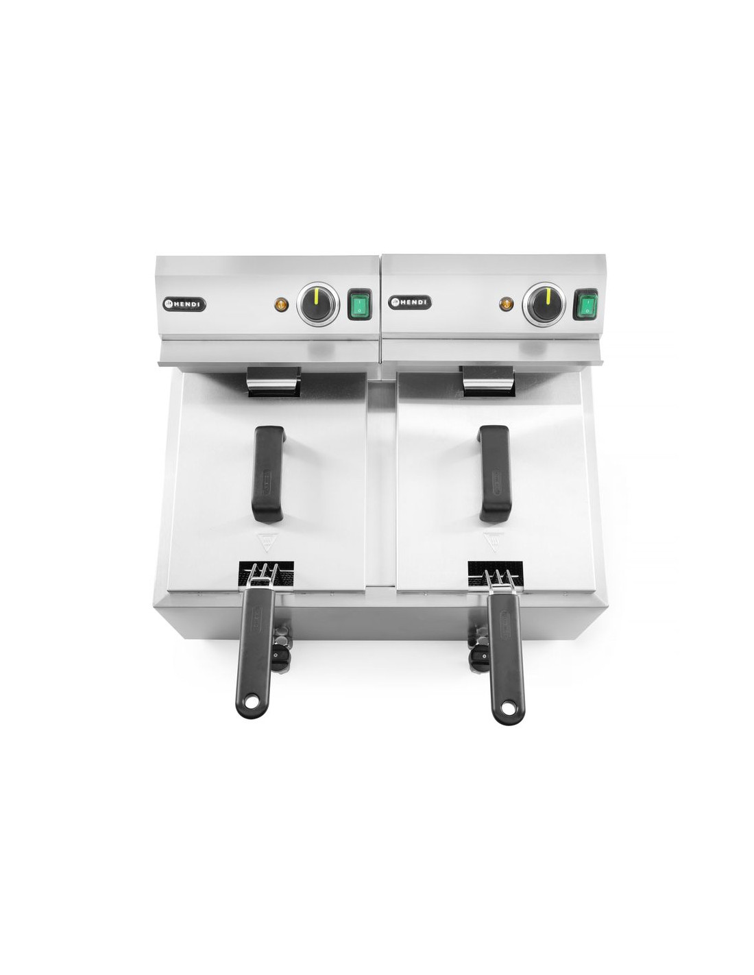 Profi Line fritöser är tillverkade av rostfritt stål 18/0. Avtagbart kontrollelement med en extra säkerhetsfunktion som stänger av fritösvärmaren när den tas bort. Fettbehållaren har en V-formad botten med en optimal "kallzon" för ökad fettutvinning. Lättavläst kontrollpanel med temperaturkontrollratt och indikatorlampa. Överhettningsskydd tack vare en återställningsbar termosäkring. Fritös korg med extra långt, svalt handtag för intensiv användning. Alla fritöser är utrustade med 1 fritös korg och 1 lock för varje kammare.