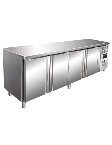 Material: (hölje och insida) rostfritt stål; (arbetsbänk) rostfritt stål