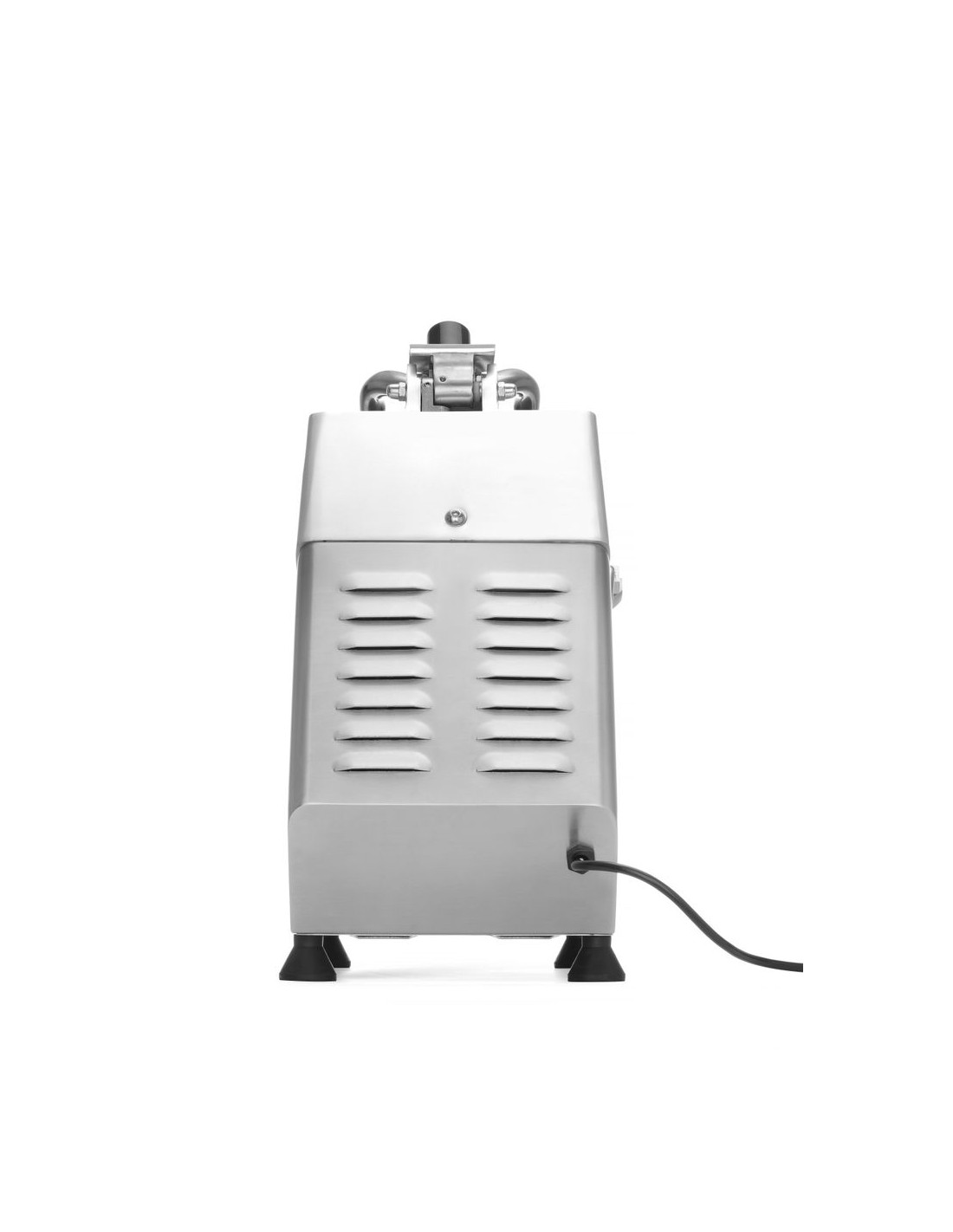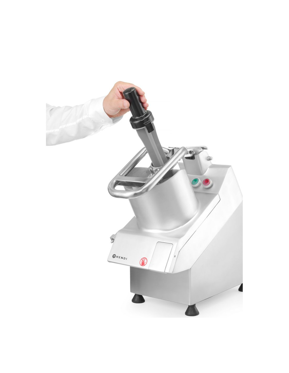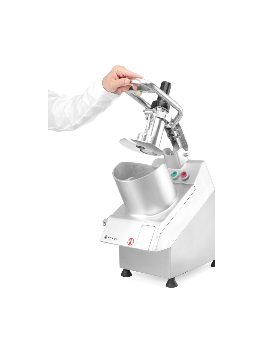 Utformad för att skära stora mängder grönsaker. Stort inlopp för stora grönsaker, upp till Ø 165 mm. Litet inlopp för långa grönsaker, t.ex. morötter, gurkor upp till Ø 55 mm. Skärkammarens hölje av gjuten aluminium, höljets nedre del av rostfritt stål. Praktiskt tryckhandtag. 750W = 1 hk luftkyld högpresterande motor. Lågspänningsknappar: STOPP, START (24 V). 2 säkerhetssystem: skäraren stängs av när tryckhandtaget lyfts och när kammarens övre lock lyfts. När tryckhandtaget sänks startar skäraren automatiskt. Enkelt och snabbt byte av skärskivor. 5 skärskivor ingår: 2 mm skivor (skiva med 3 blad), 4 mm skivor (skiva med 3 blad), 3 mm rivjärn, 4,5 mm rivjärn, 7 mm rivjärn, utkastarskiva. 4 halkfria gummifötter. Hastighet: 300 RPM. Produktivitet: 100 – 350 kg/h. Vikt: 25 kg.