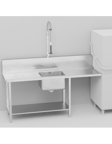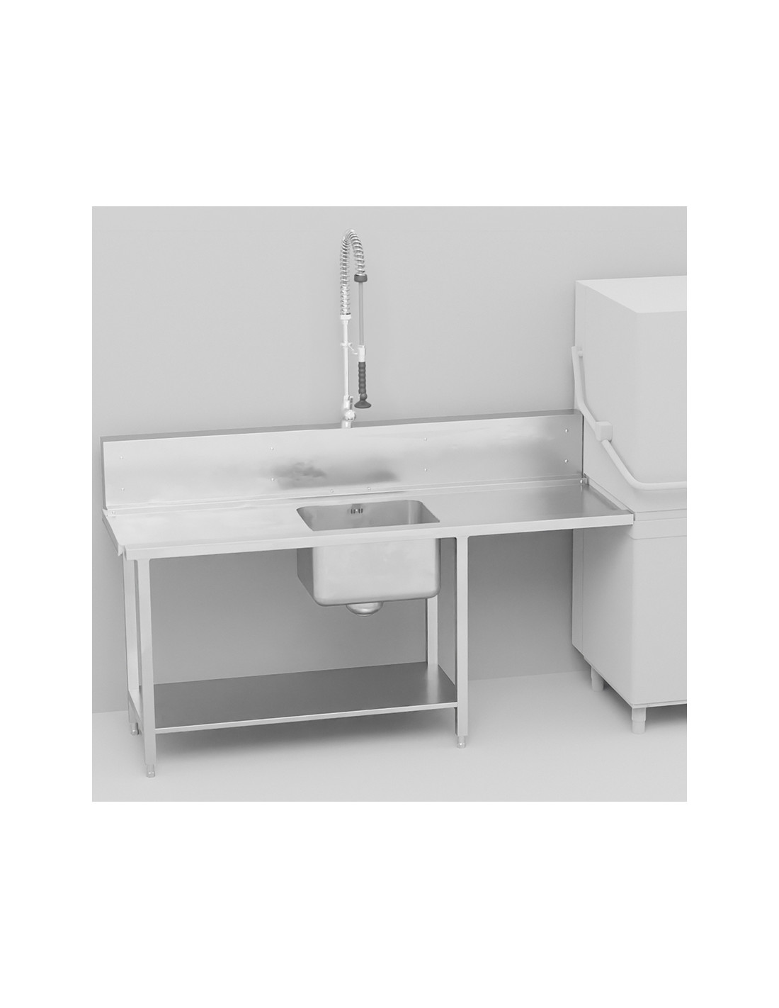 • Utdragsskena B 510 mm. Inloppsbord anslutningsbara till höger eller vänster sida av diskmaskinen: 9 L/min vattenbesparande handdusch
