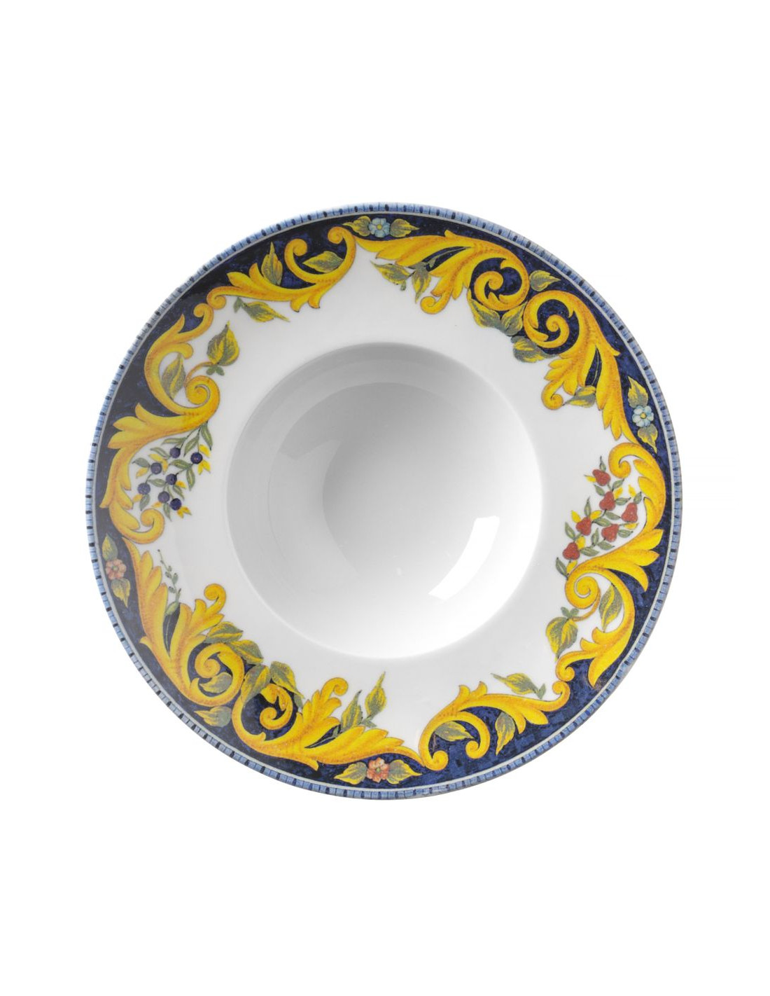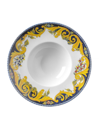 HENDI Pastattallrik Barocco är idealisk för att servera en mängd olika pastarätter, särskilt spaghetti eller tagliatelle, tack vare sin djupa botten. Det dekorativa, färgglada mönstret i barockstil gör att tallriken sticker ut bland andra. Dekorationen sitter under glasyren vilket gör den diskmaskinssäker.