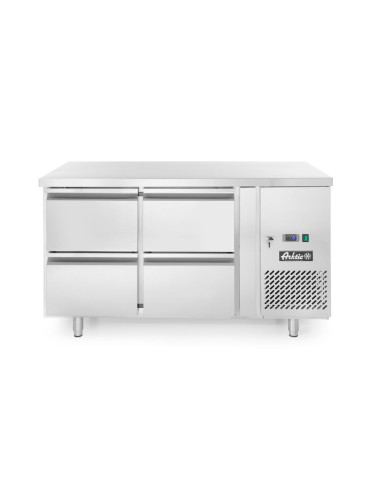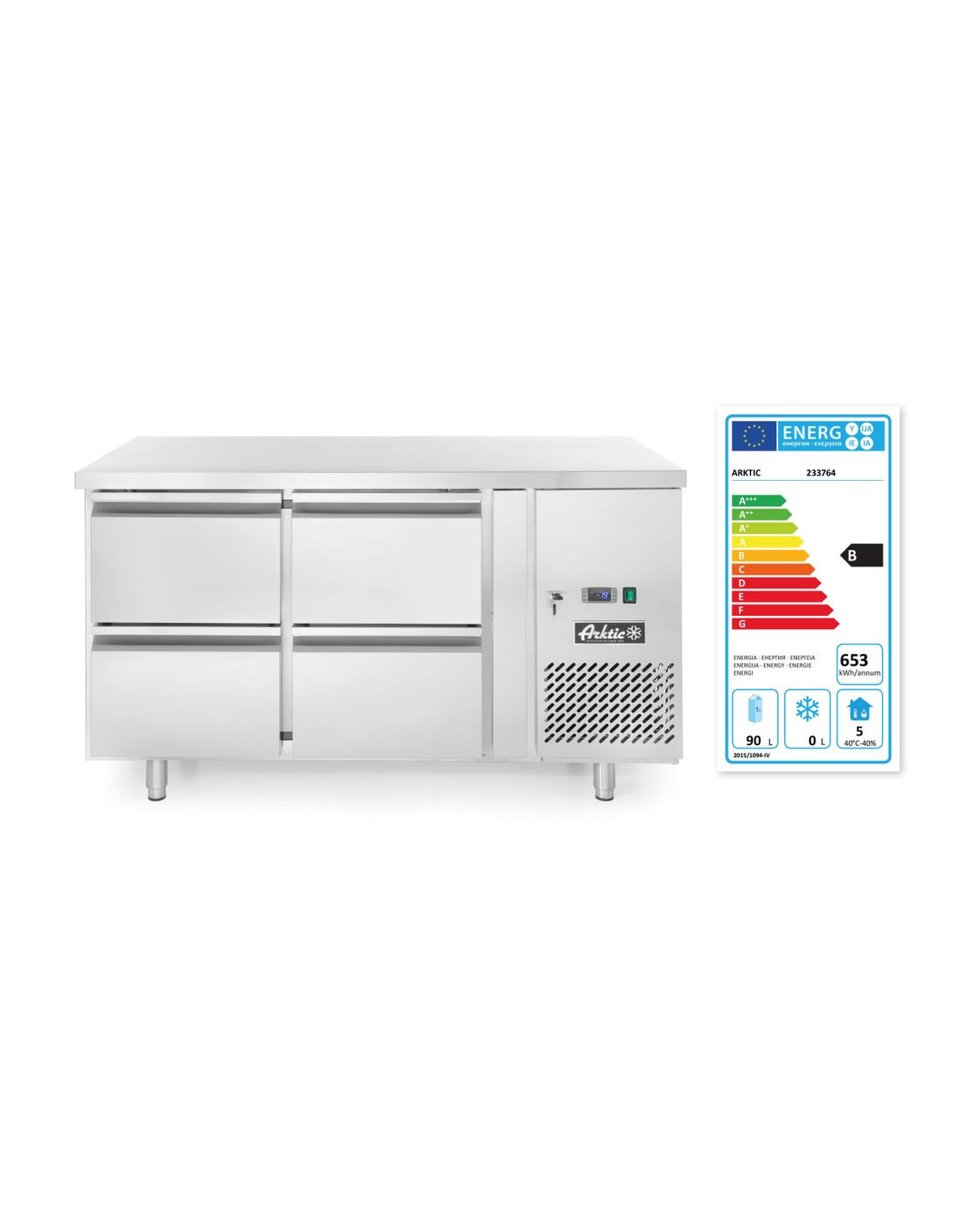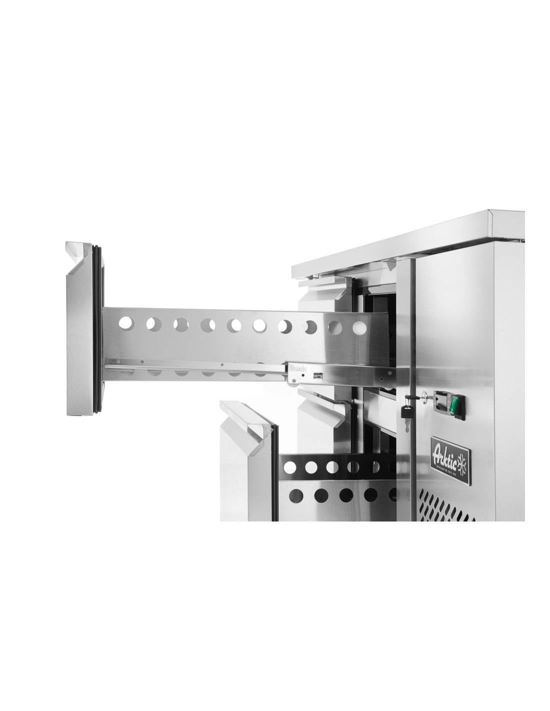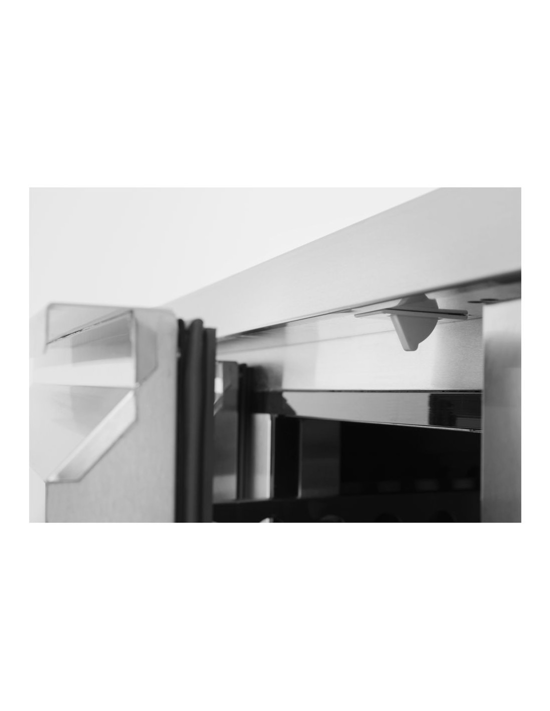Inre och yttre hölje är tillverkade av högkvalitativt rostfritt stål, förutom det yttre bakre locket som är tillverkat av galvaniserat stål. Självstängande dörrar med bekväma handtag. Luftkylning med automatisk avfrostning, kompressor placerad bredvid kammaren. 50 mm tjock polyuretanskumisolering. Med justerbara hyllplan, passar behållare upp till GN 1/1. Digital display och elektronisk termostat. Med 4 justerbara fötter i rostfritt stål.