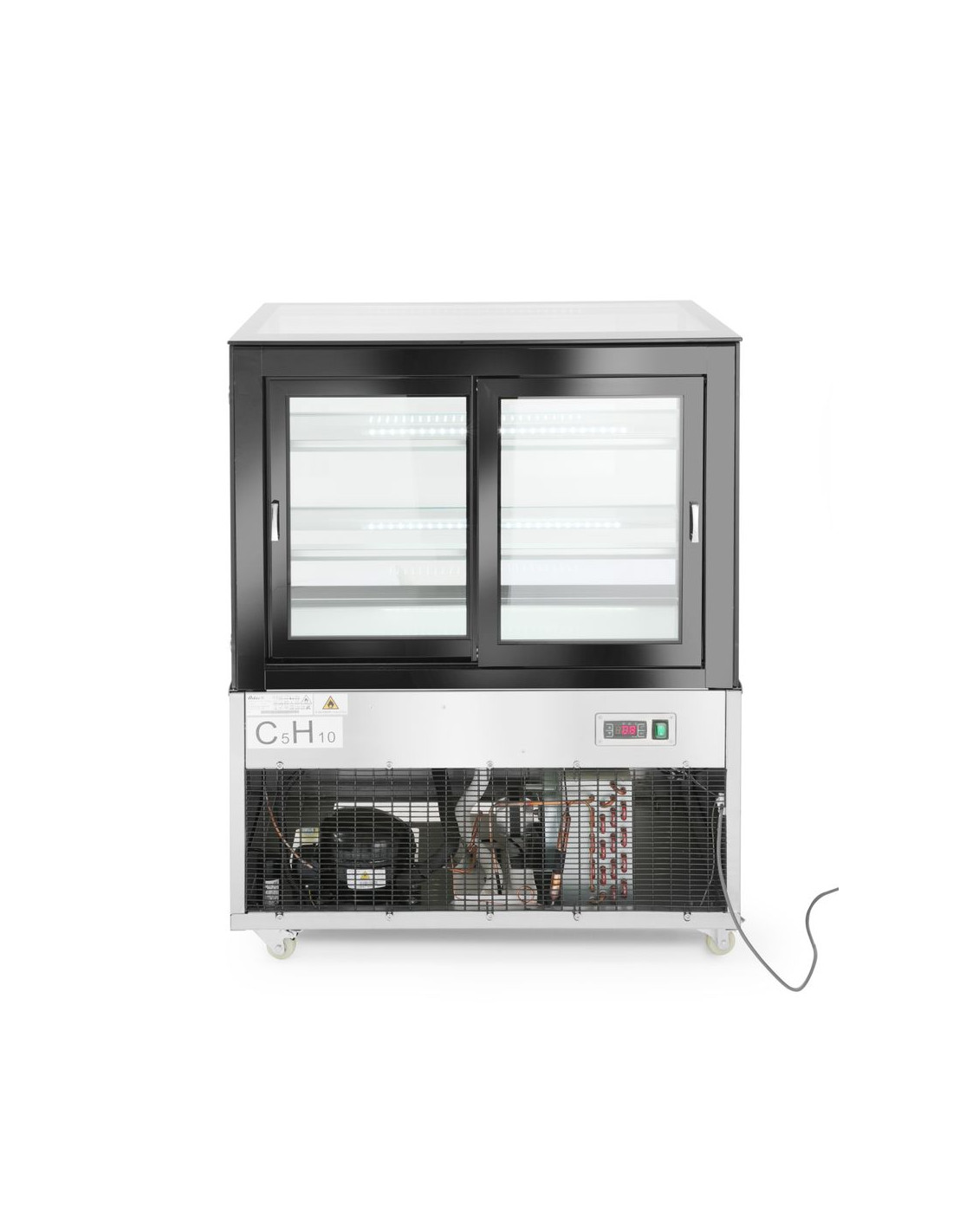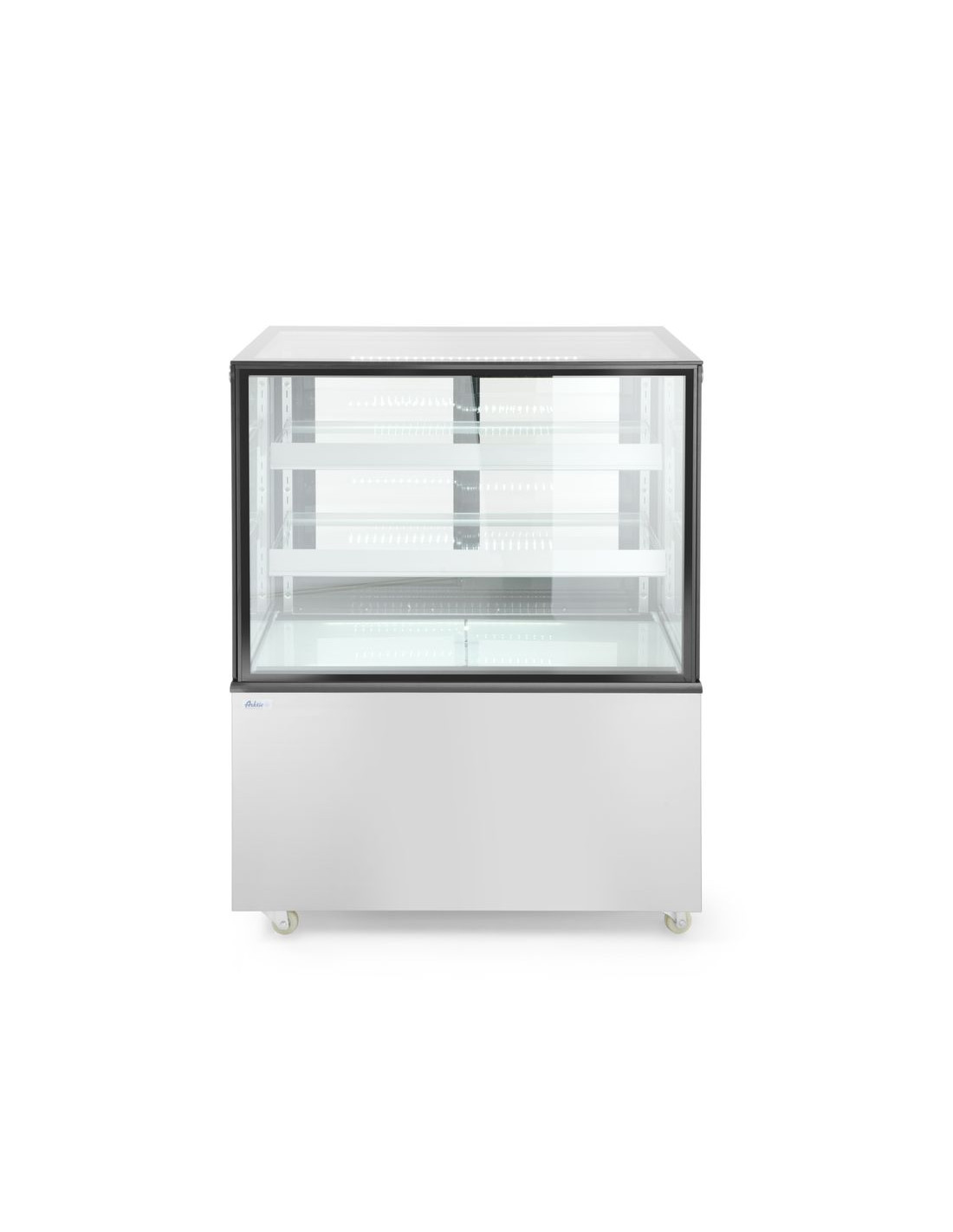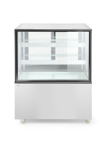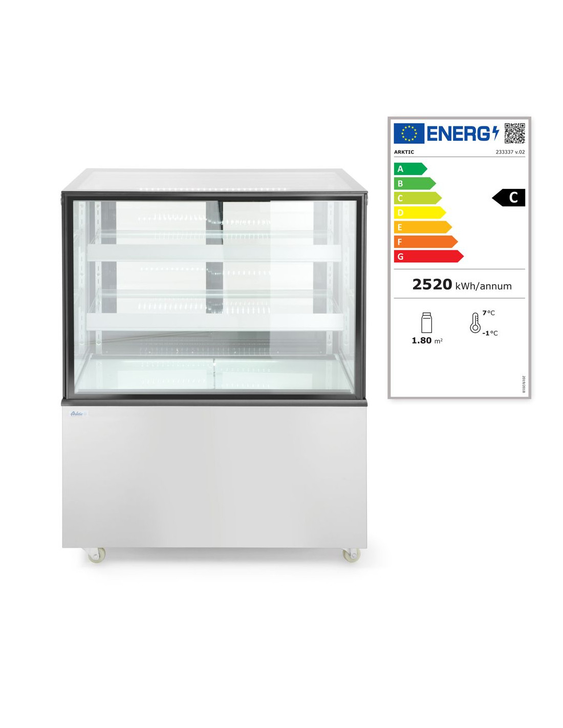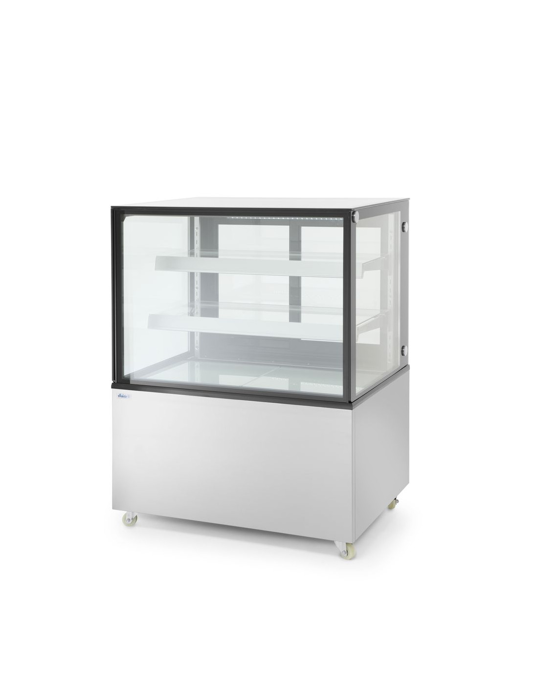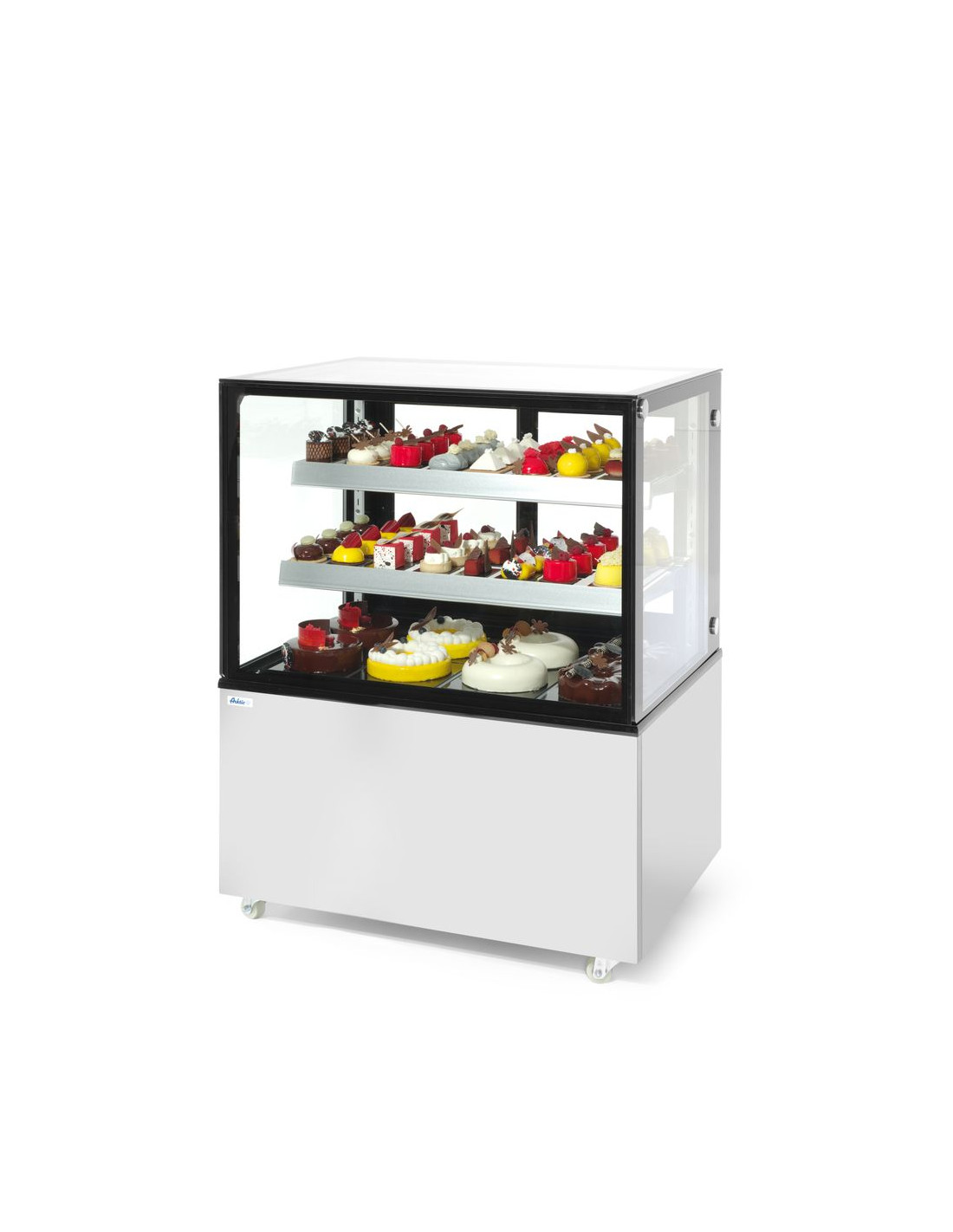 Klassisk kakdisplay med dubbelglas. Ljusa LED-lampor säkerställer att produkterna visas optimalt.