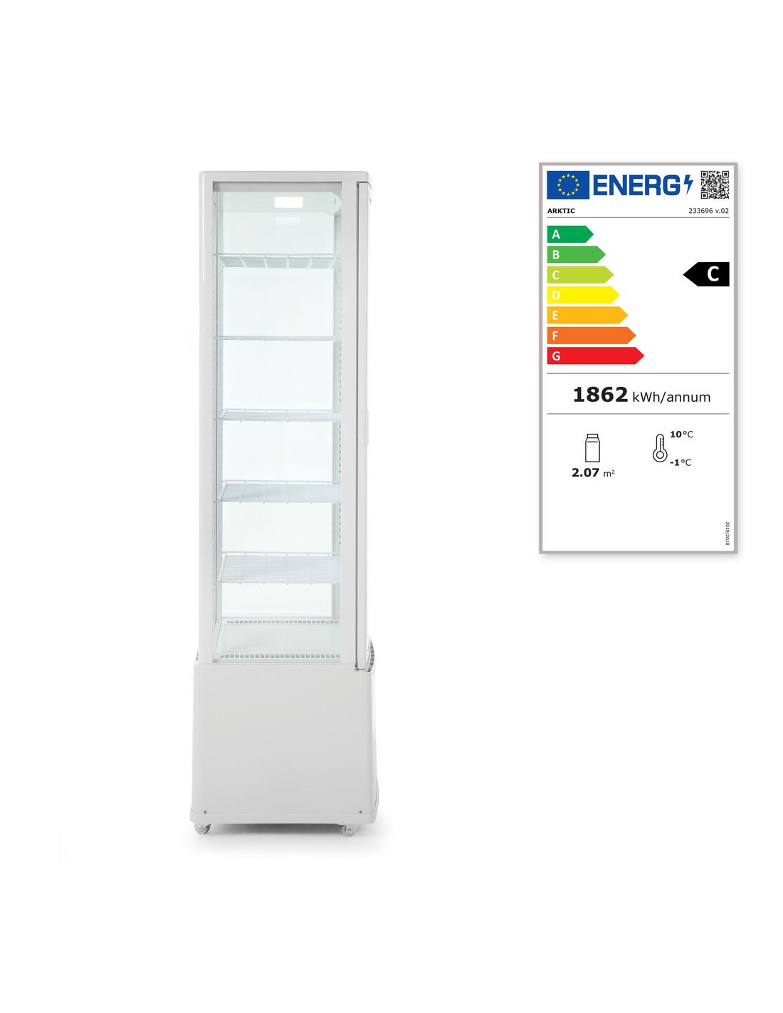 Lämplig för alla typer av kylda produkter. Utrustad med dubbelglas och justerbara hyllplan.