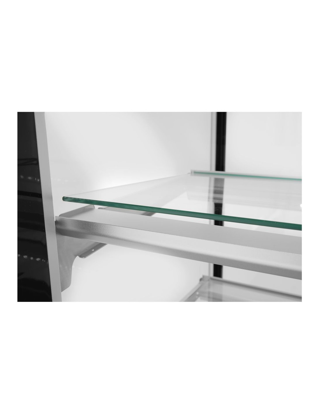 Hölje i rostfritt stål med dubbelglas. Åtkomligt via en dörr på baksidan. Luftkylning med automatisk avfrostning, kompressor placerad under kammaren. Med stark LED-belysning upptill och under varje hyllplan. Utrustad med 4 hjul varav 2 har bromsar. Digital temperaturregulator och display. Köldmedium: R290.