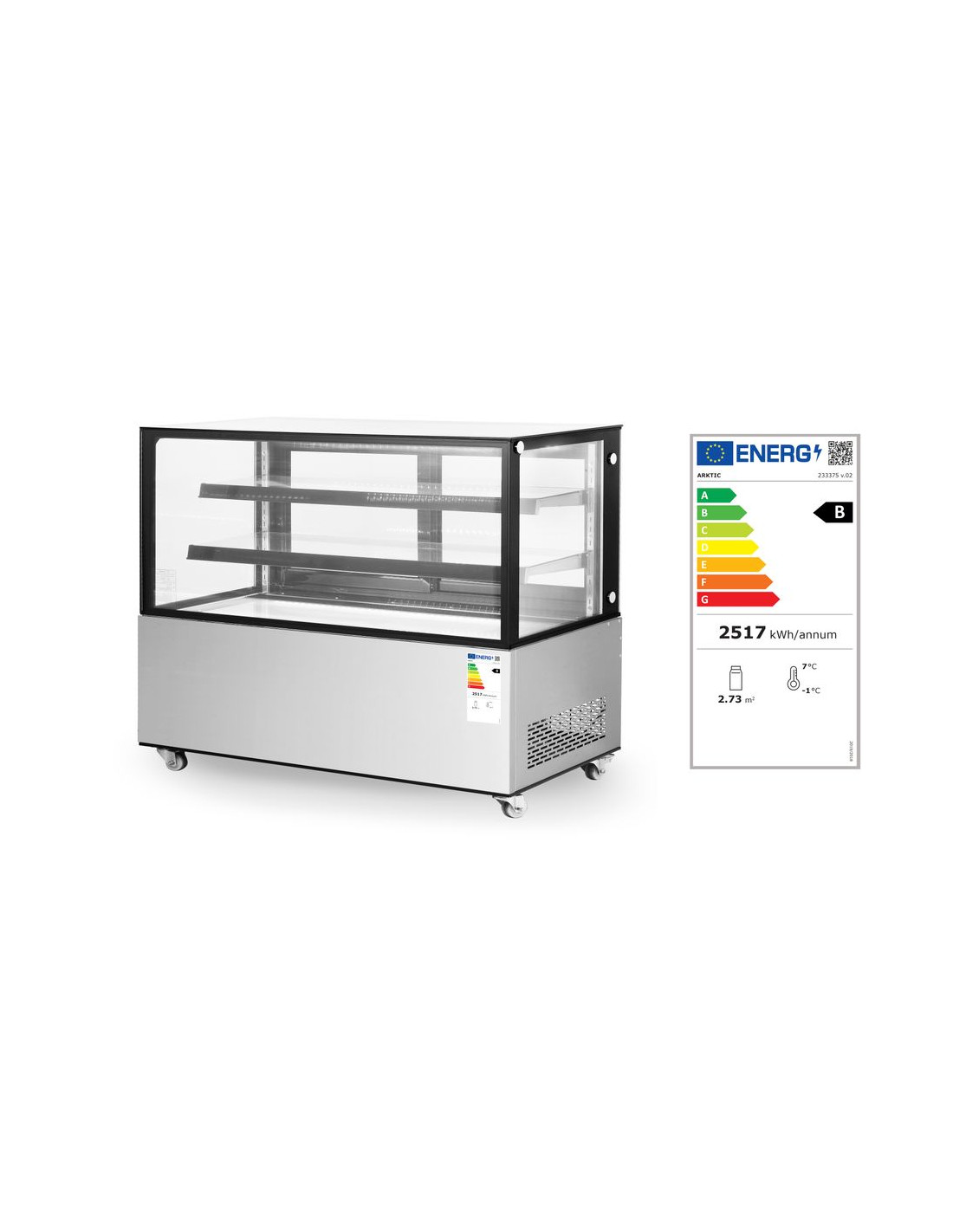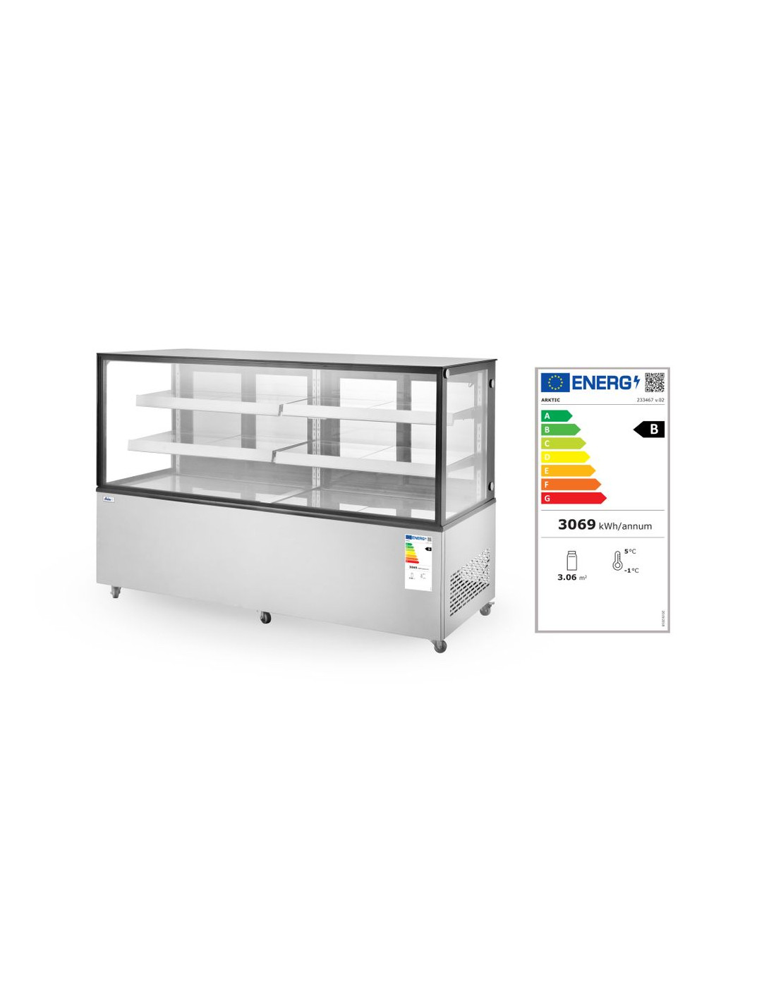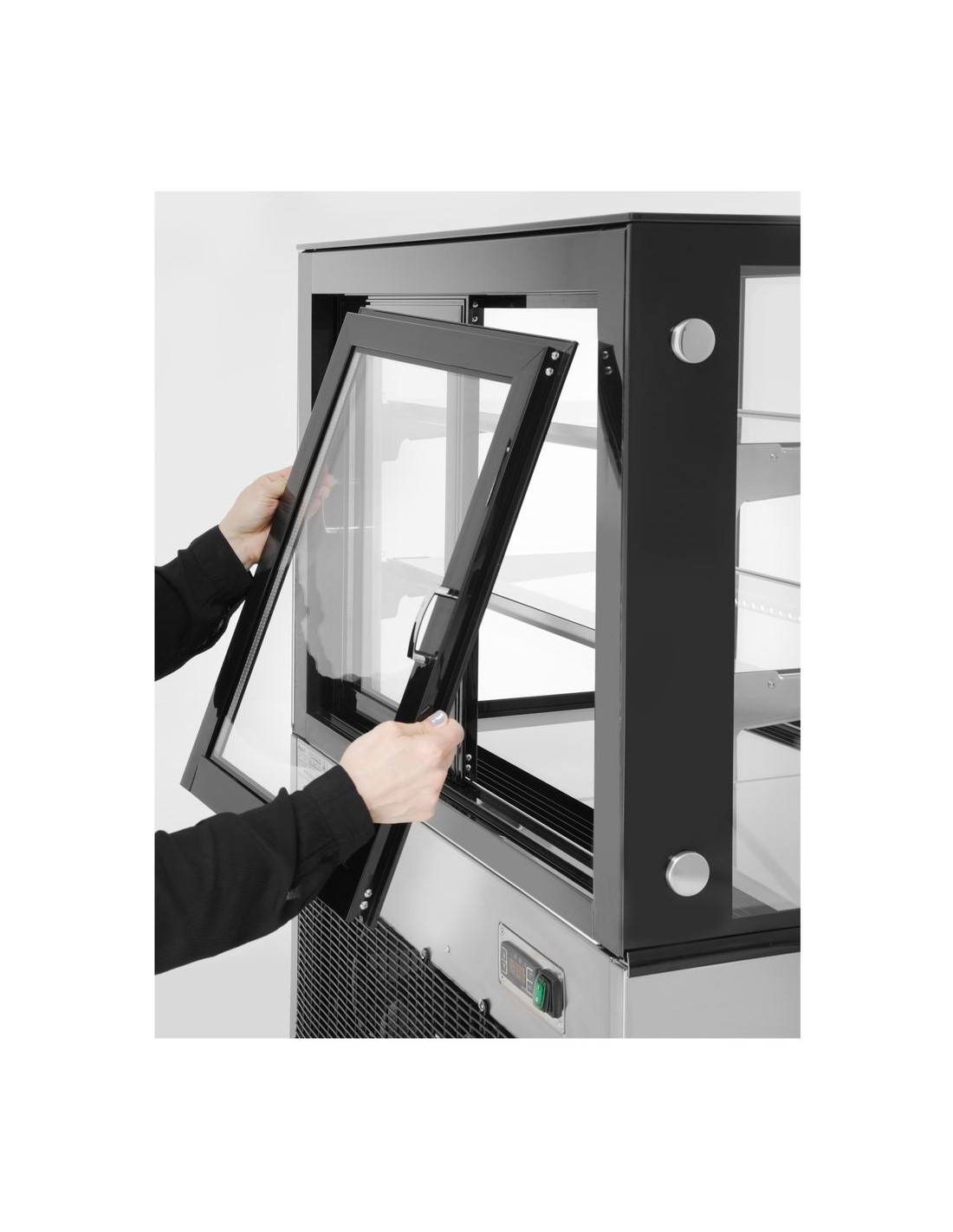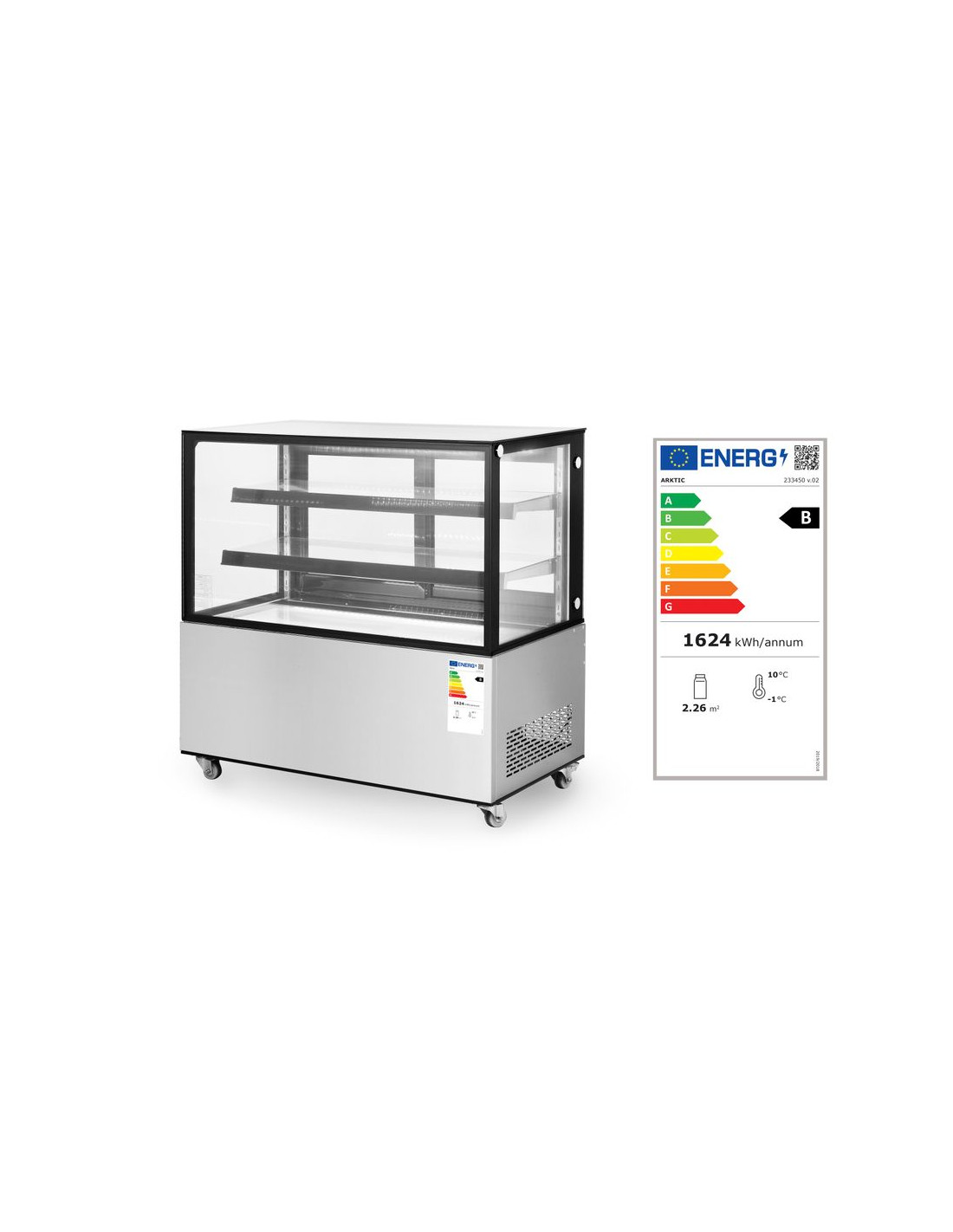 Klassisk kakdisplay med dubbelglas. Ljusa LED-lampor säkerställer att produkterna visas optimalt.