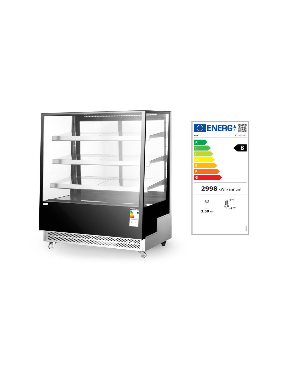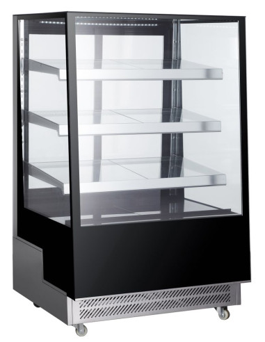 Klassisk kakdisplay med dubbelglas. Ljusa LED-lampor säkerställer att produkterna visas optimalt.