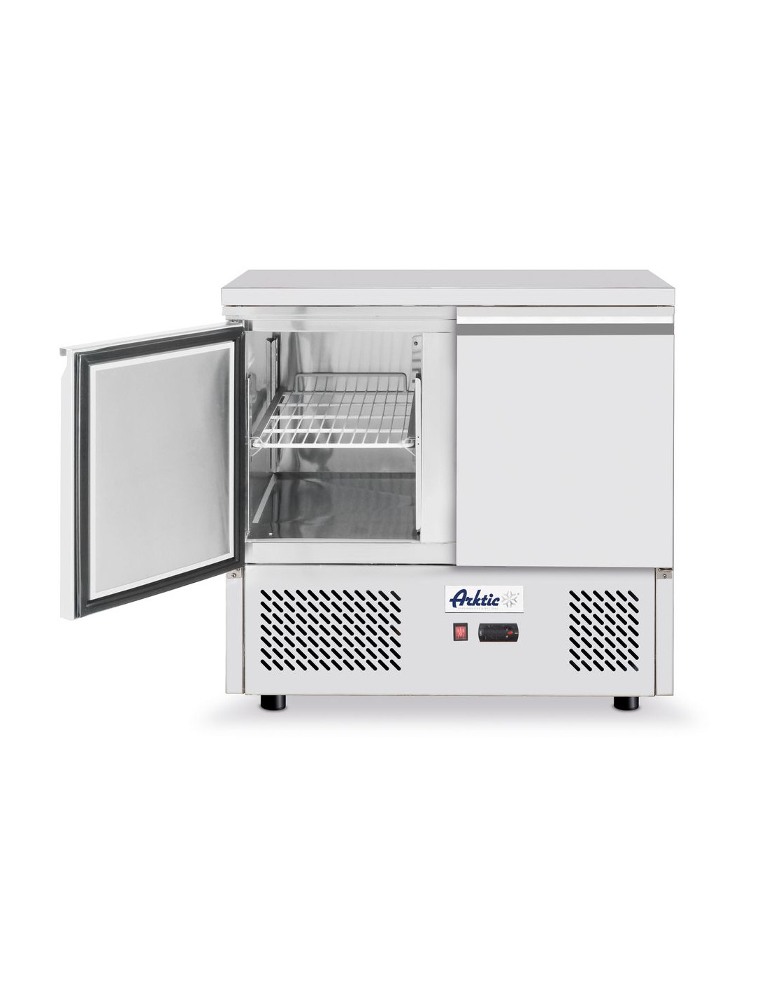 Inre och yttre hölje är tillverkade av högkvalitativt rostfritt stål. Dörrar försedda med bekväma handtag. Forcerad luftkylning med automatisk avfrostning, kompressor placerad under kammaren. 35 mm tjock polyuretanskumisolering. Med justerbara hyllplan, passar behållare upp till GN 1/1. Digital display och elektronisk termostat. Med 4 justerbara plastfötter. Automatisk avfrostning med kondensförångare. Klimatklass: 5.