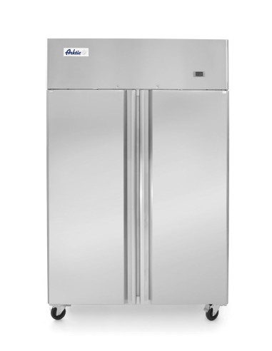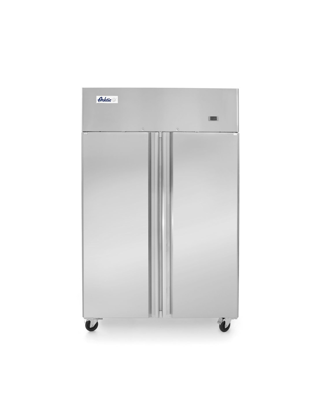 Arktic-frysen med två dörrar har forcerad luftkylning med automatisk avfrostning som säkerställer jämna temperaturer, och den digitala displayen och den elektroniska termostaten ger exakt kontroll. Justerbara hyllor passar upp till GN 1/1-behållare, och smidig förflyttning görs enkel med fyra hjul.