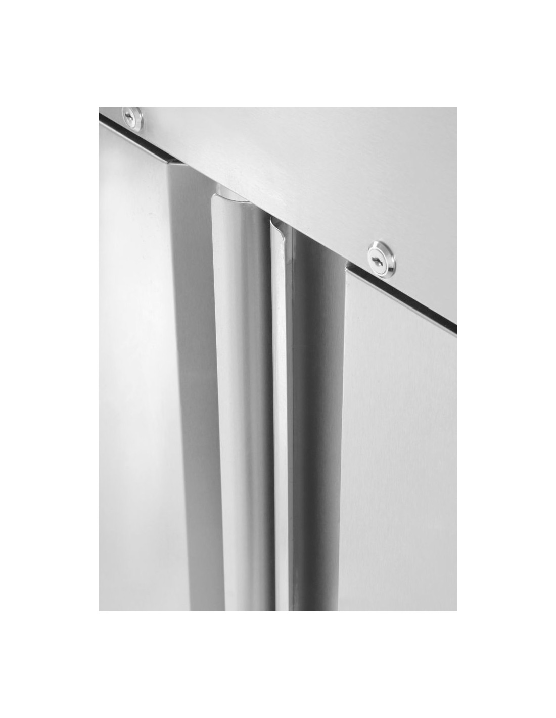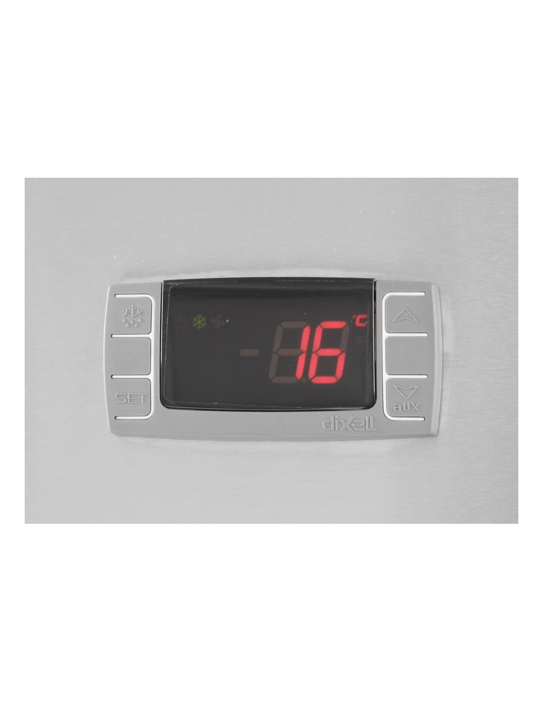 Inre och yttre hölje är tillverkade av rostfritt stål. Yttre bakre lock tillverkat av galvaniserat stål. Självstängande låsbara dörr(ar) med bekväma, böjda dörrhandtag. Luftkylning med automatisk avfrostning, kompressor placerad ovanför kammaren. 50 mm tjock polyuretanskumisolering. Med justerbara hyllplan, passar behållare upp till GN 1/1. Digital display och elektronisk termostat. Utrustad med 4 hjul varav 2 är länkhjul.