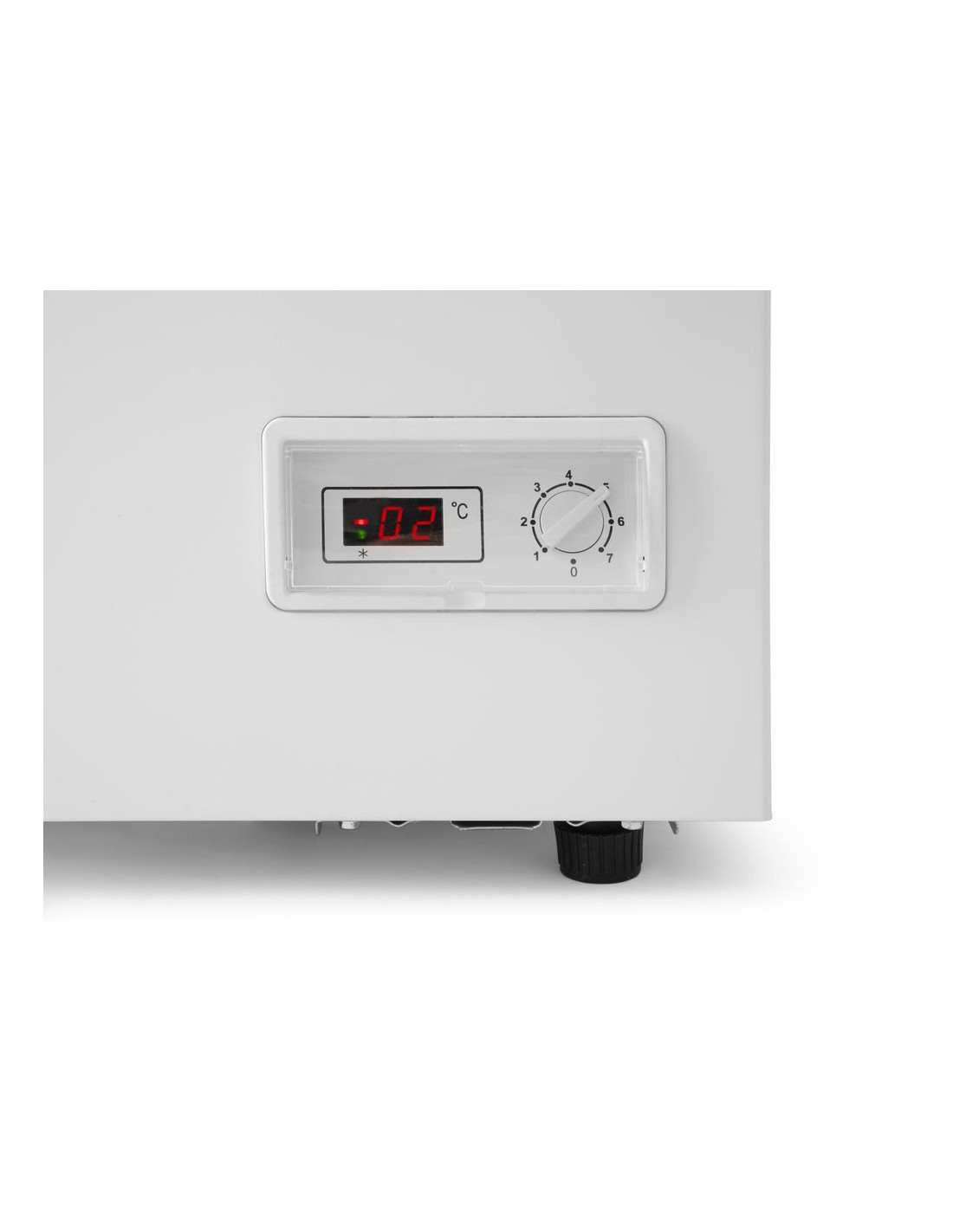Hölje av aluminium. Dörren är tillverkad av förmålad stålplåt täckt med PVC-film. Med självstängande låsbart lock. Luftkylning med manuell avfrostning, kompressor placerad under kammaren. 70 mm tjock skumisolering. Ljusstark LED-belysning i kammaren. Digital temperaturdisplay och manuell kontroller. Utrustad med 2 hjul och 2 justerbara fötter, eller 6 hjul på större modeller. Temperaturområde: -18 °C till -26 °C.